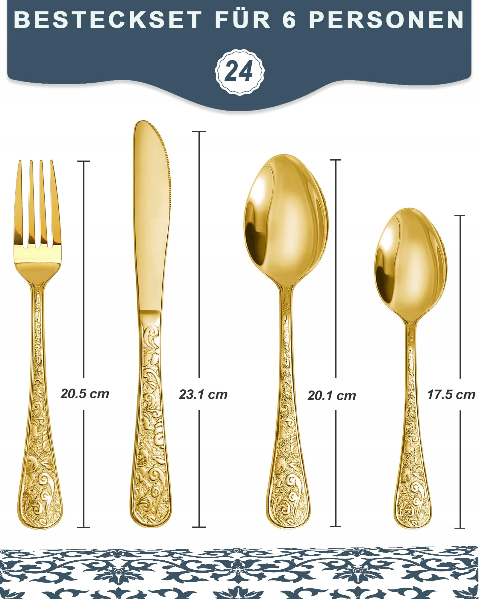SHEUMNT Zestaw Sztućców 24-cz. Złoty Vintage Dla 6 Osób Stal Nierdzewna | Premium Supply