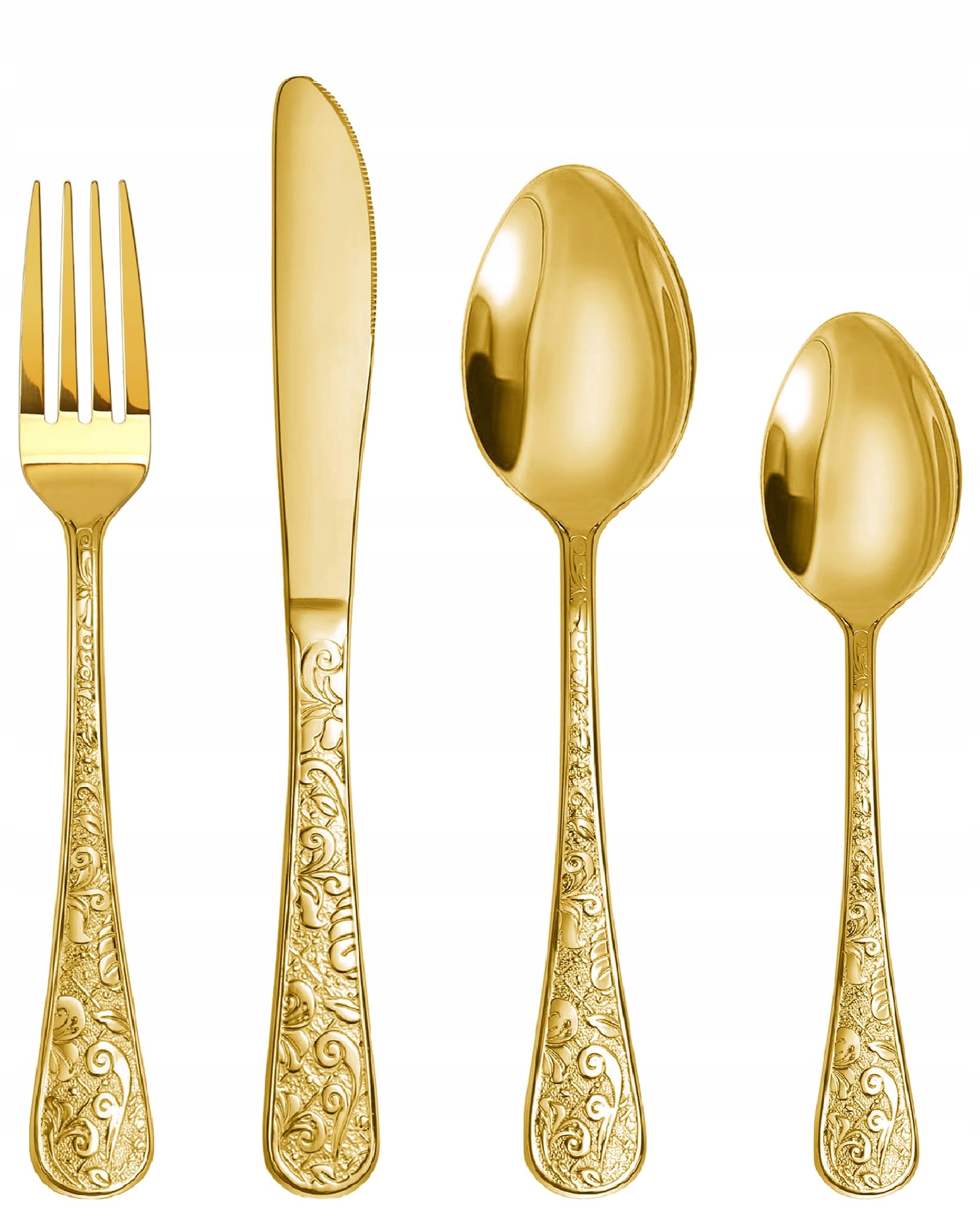 Elegancki 24-częściowy zestaw sztućców: Ten wyrafinowany zestaw sztućców zawiera 6 widelców, 6 noży, 6 łyżek stołowych i 6 łyżeczek deserowych, oferując kompletną zastawę dla sześciu osób.