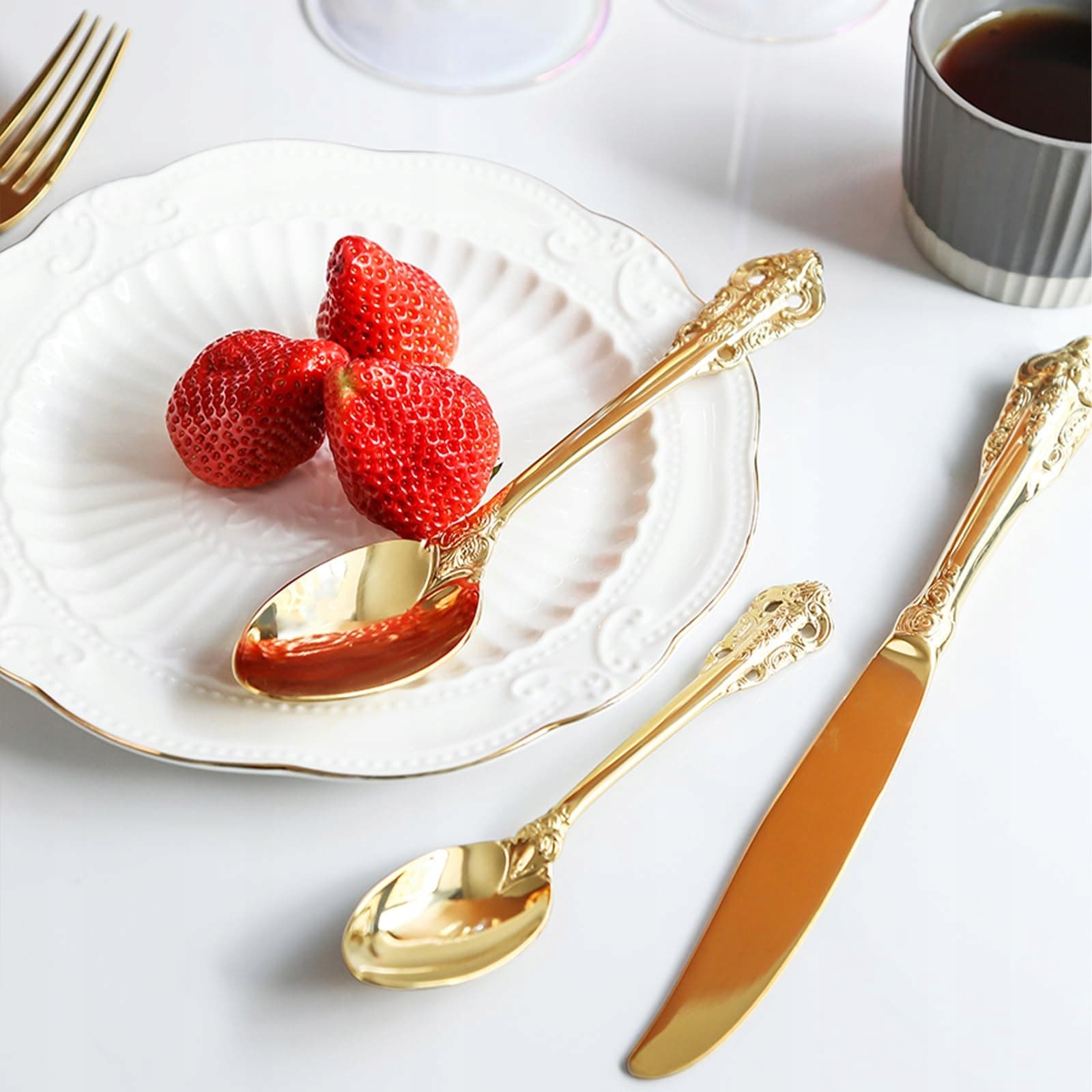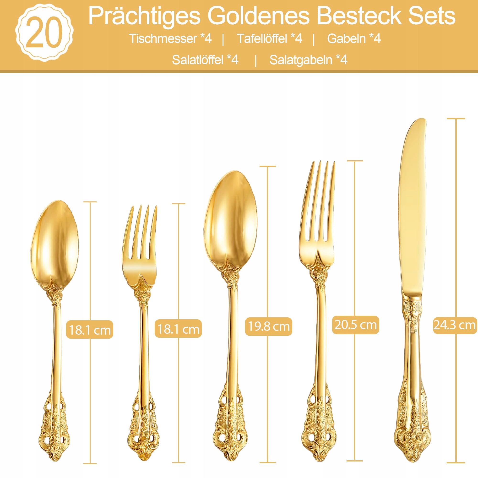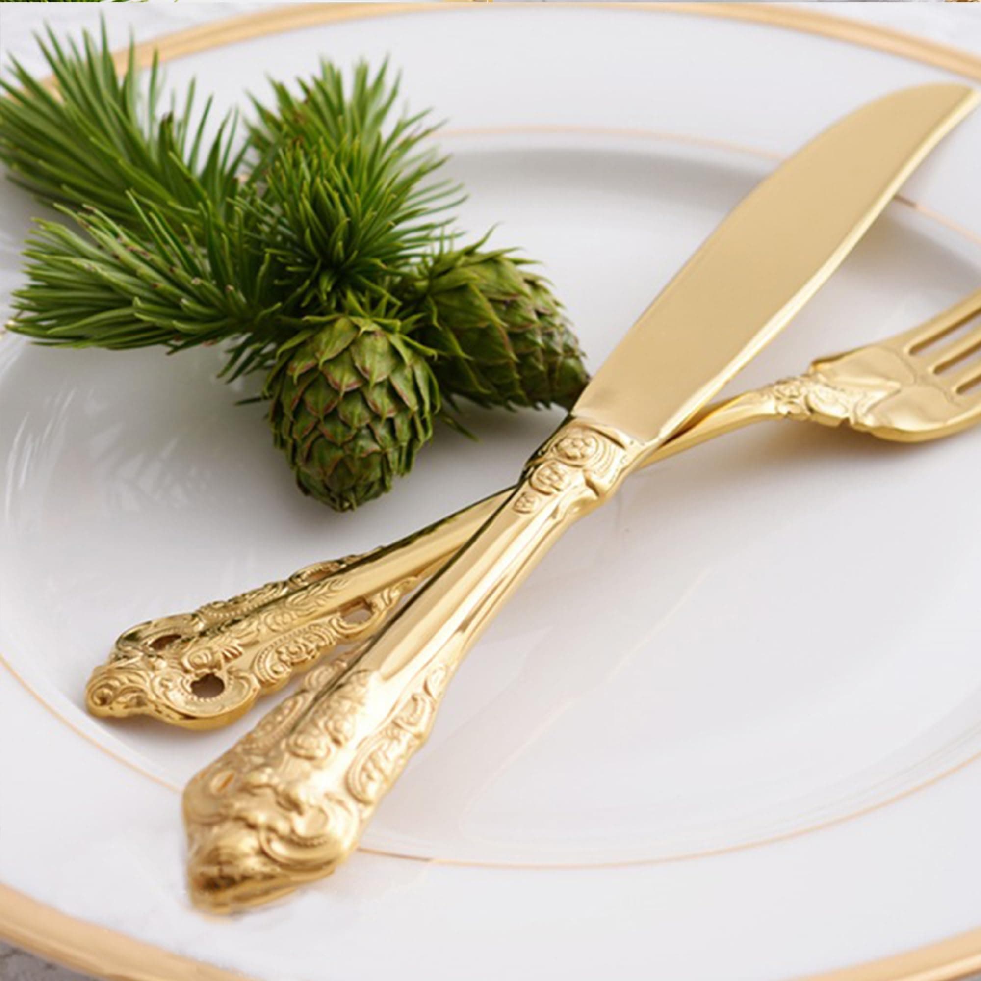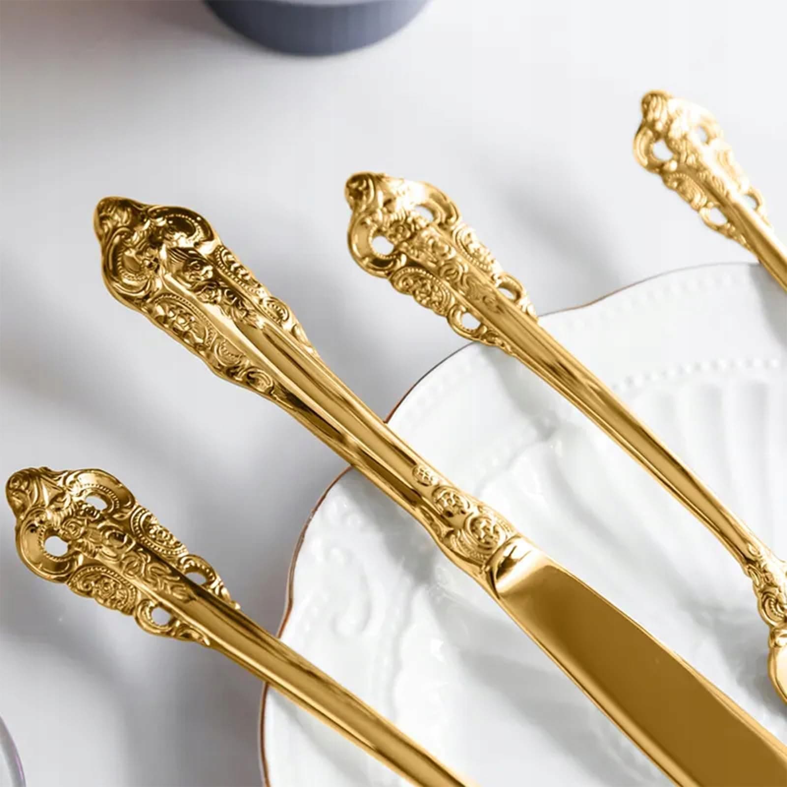 SHEUMNT Zestaw Sztućców Barok Złoty 18/10 Stal Nierdzewna 20 Elementów | Premium Supply