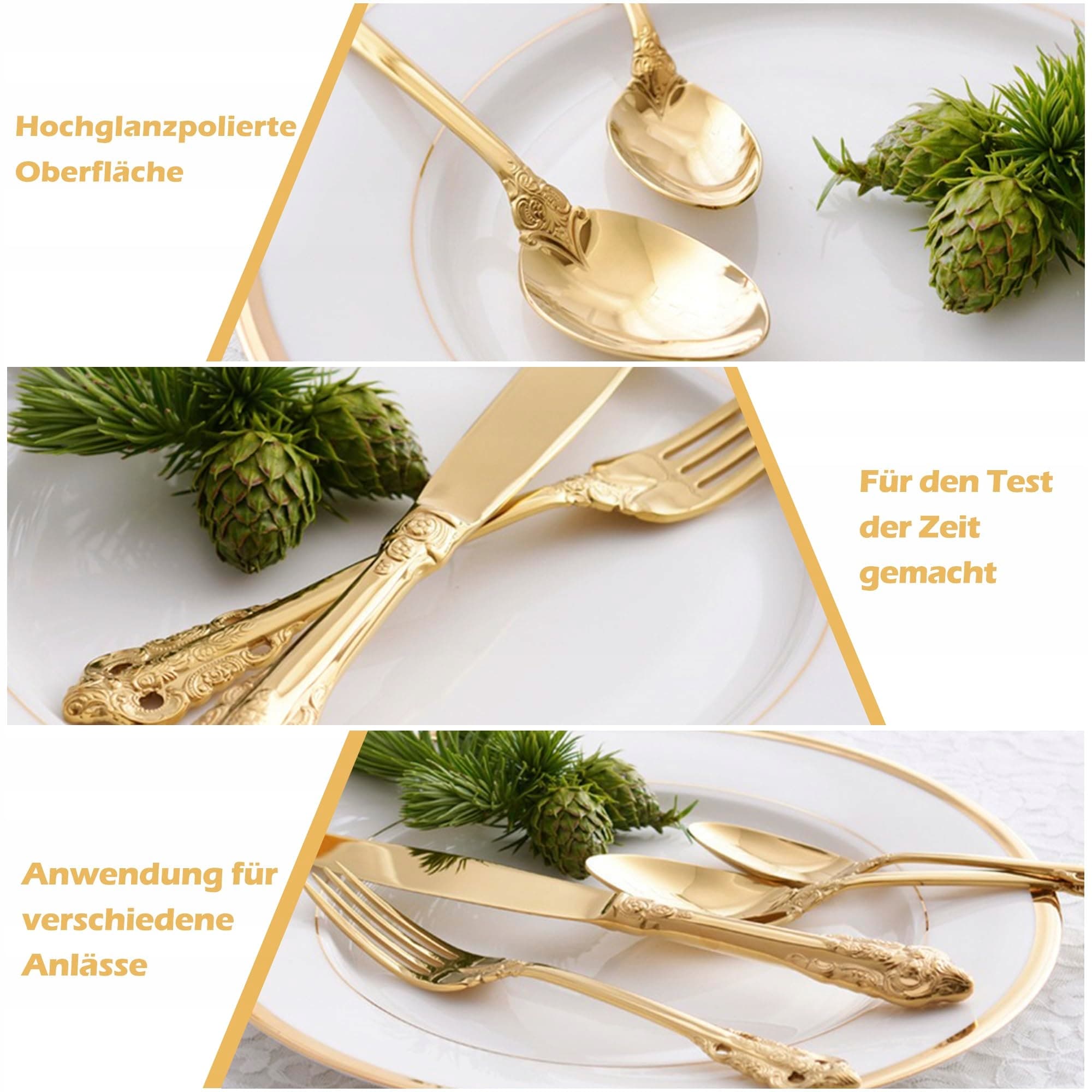 SHEUMNT Zestaw Sztućców Barok Złoty 18/10 Stal Nierdzewna 20 Elementów