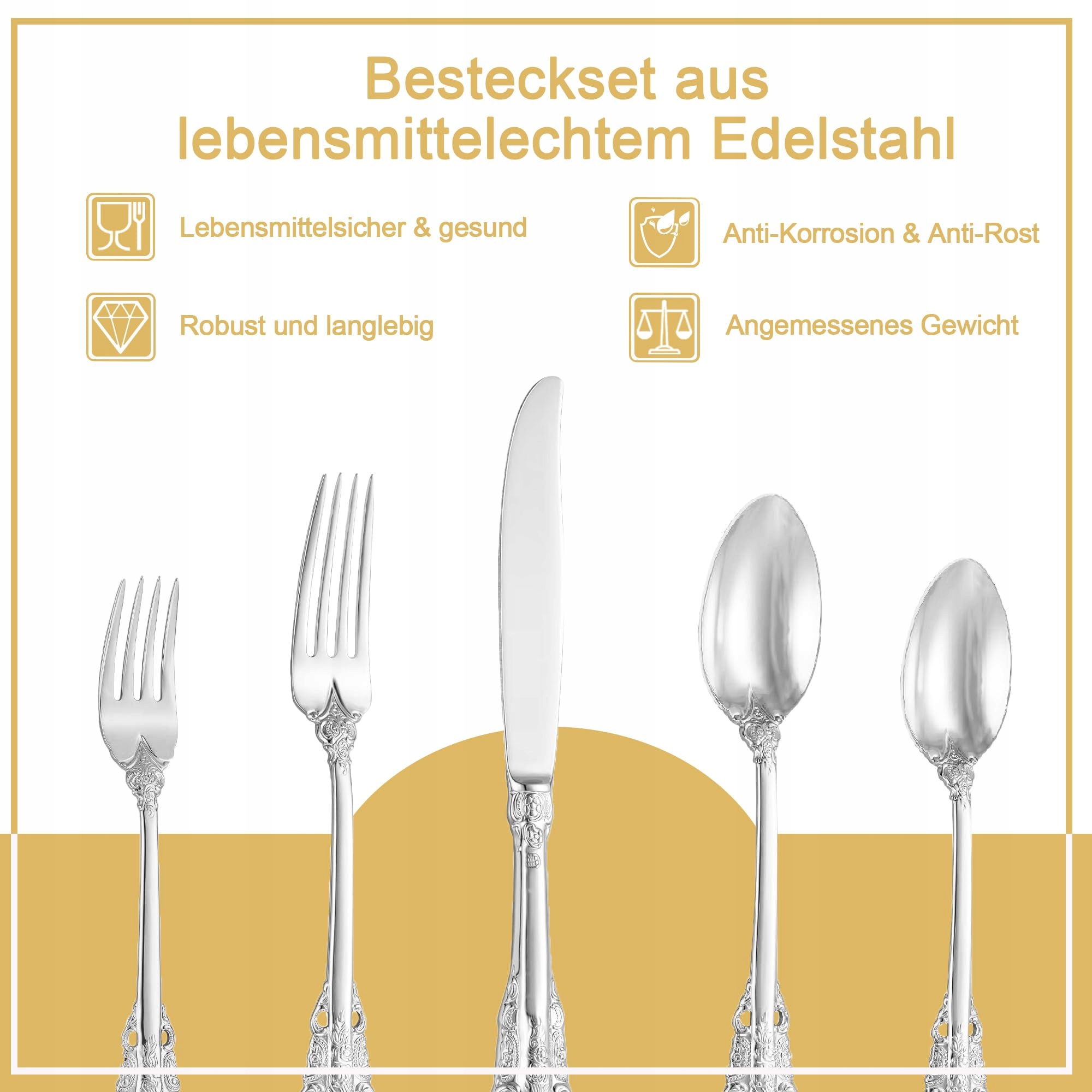 【Zdrowy materiał】 Ten zestaw sztućców wykonany jest z wysokiej jakości, bezpiecznej dla żywności stali nierdzewnej 18/10, która jest trwała, odporna na rdzę, nietoksyczna i wolna od BPA. Gładkie i wygodne sztućce dobrze leżą zarówno w dłoniach dorosłych, jak i starszych dzieci.