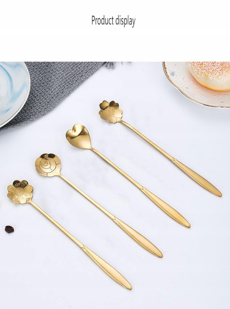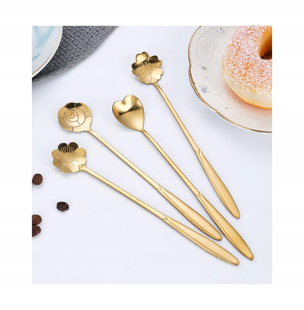 SHLWYG zestaw łyżek ze stali nierdzewnej - 4 kreatywne długie łyżki z wzorem kwiatów wiśni i kwiatów, złote łyżeczki do kawy