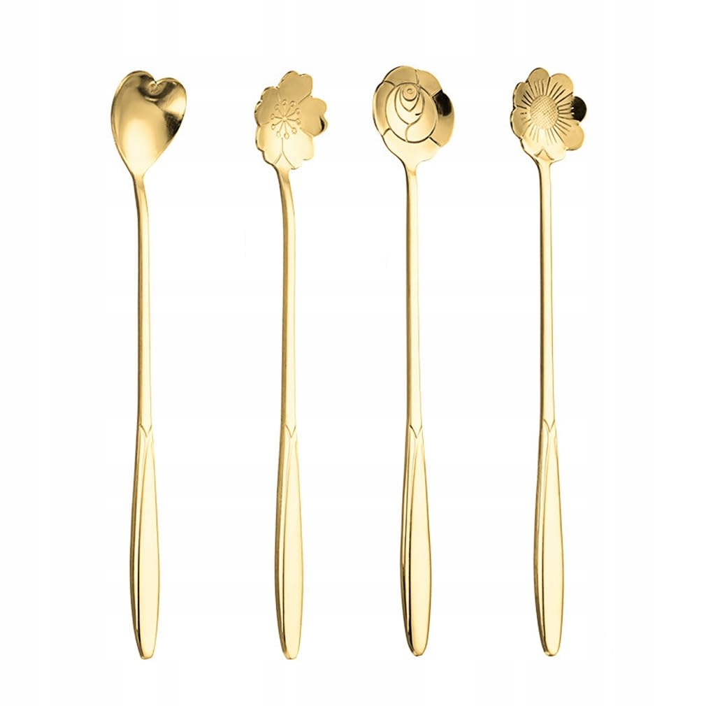 SHLWYG Zestaw Złotych Łyżek Do Kawy Z Motywem Kwiatowym | Premium Supply