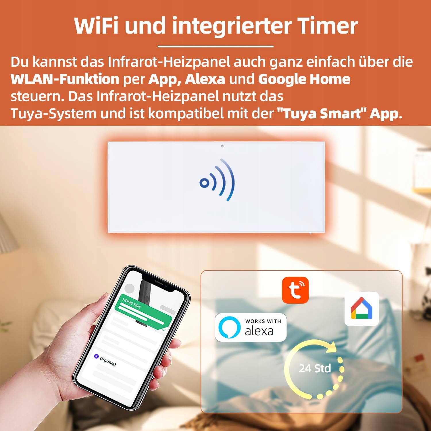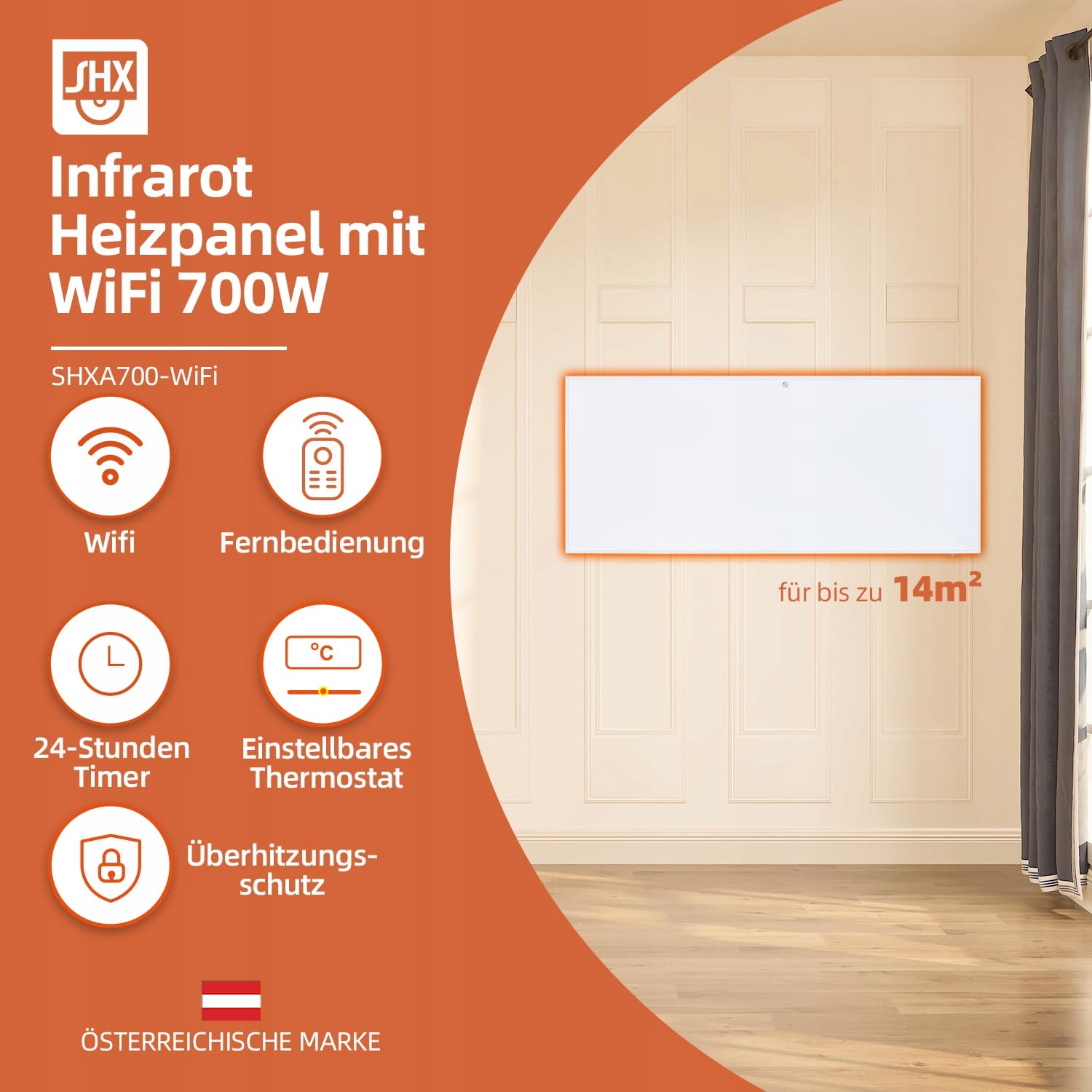 SHX Panel grzewczy na podczerwień z WiFi 700W SHXA700-WiFi – 700 Watt, 7-14m², montaż na ścianie, WiFi, pilot, biały