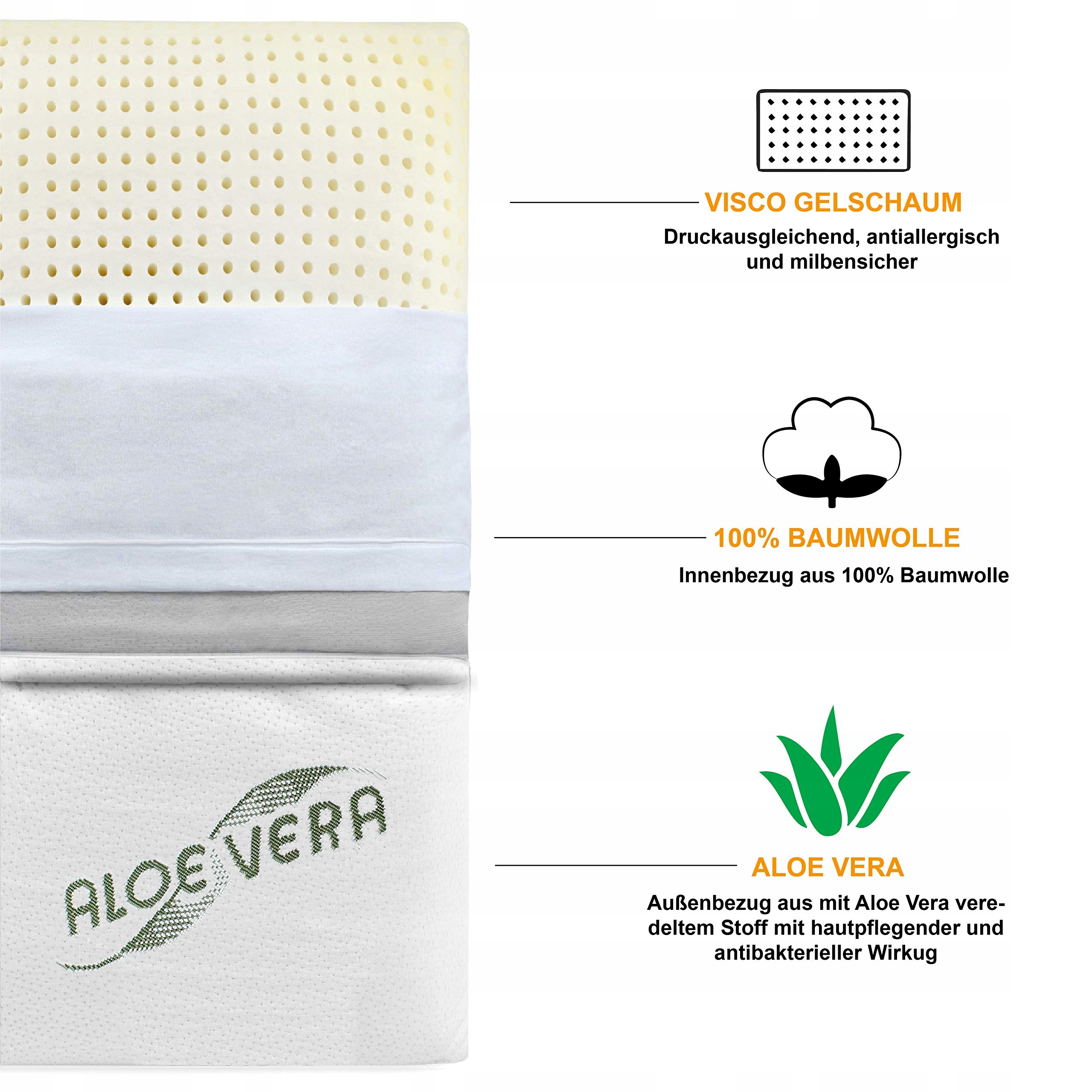 Siebenschläfer ortopedyczna poduszka pod szyję - poduszka z pianki visco-gel (memory foam) z pokrowcem z aloesu - poduszka w rozmiarze 70x42cm, wysokość 15cm