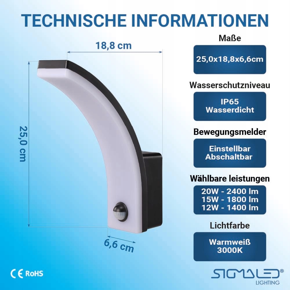 SIGMALED Oświetlenie Zewnętrzne LED Z Czujnikiem Ruchu Wodoodporna IP65 | Premium Supply