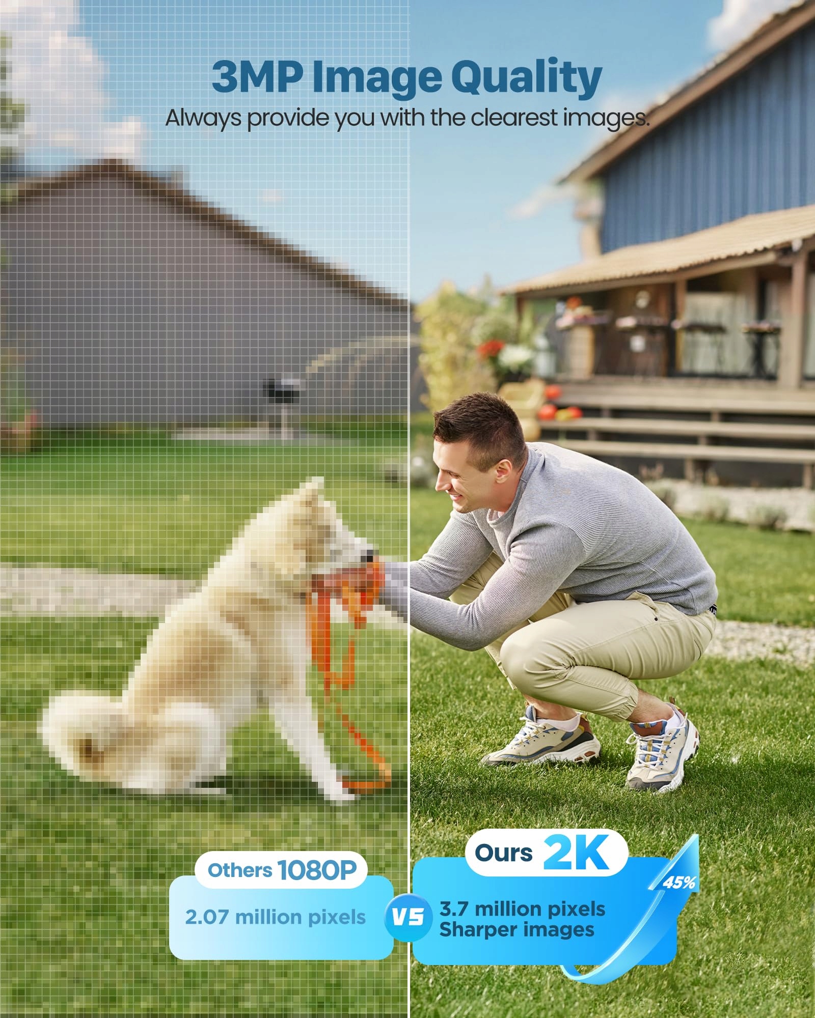 【Rozdzielczość 2K i brak mozaiki】Najnowsza technologia rozdzielczości 2K dodatkowo poprawia efekt wizualny kamery. W porównaniu z pełnoekranową mozaiką, z tą kamerą z większym prawdopodobieństwem zobaczysz wyraźne wideo, co zapewnia inne doświadczenie użytkownika.