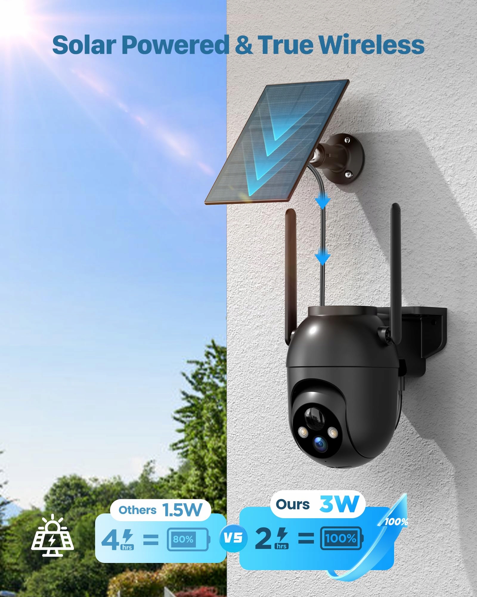 【Eliminacja uciążliwych kroków ładowania】Kamera solarna jest wyposażona w panel solarny i wydajną baterię litową, co pozwala na ładowanie w ciągu dnia energią słoneczną i zasilanie nocą z baterii, bez obaw o słabą baterię. Nie musisz już wspinać się na drabinę, aby zdjąć kamerę do ładowania.
