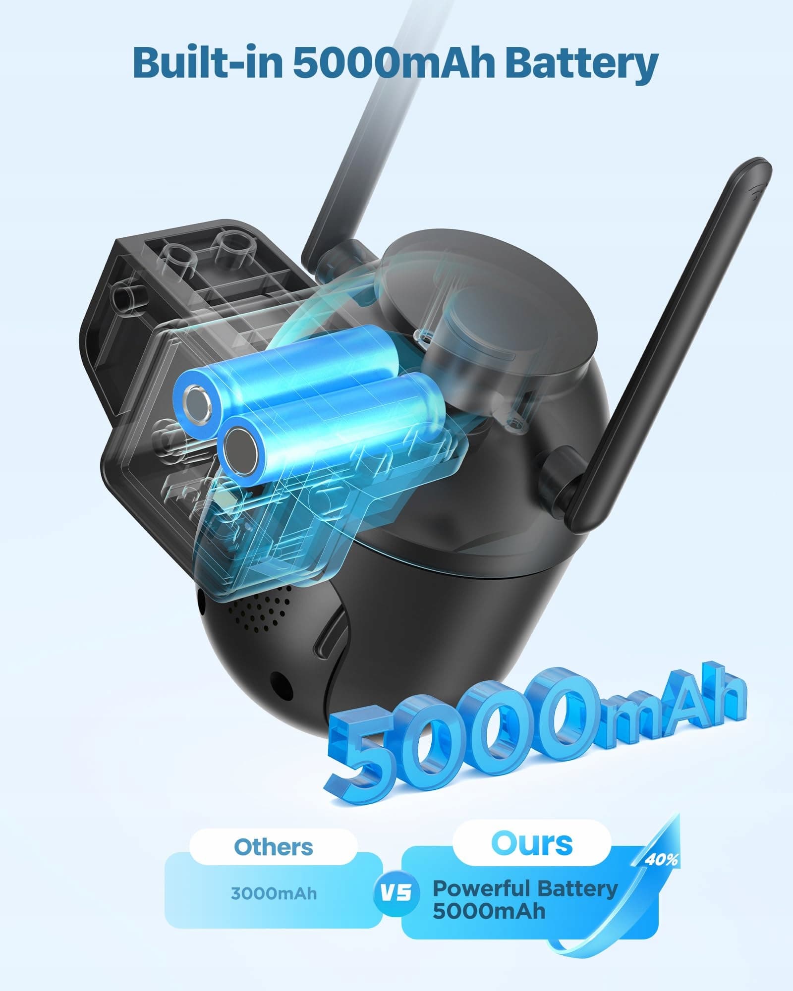 SIIOOE Kamera monitoringu zewnętrznego na akumulator i solar z czujnikiem ruchu: 2K Kamera WLAN na zewnątrz bezprzewodowa - 360° PTZ Kamera zewnętrzna z funkcją noktowizji - 5G Nieobsługiwane