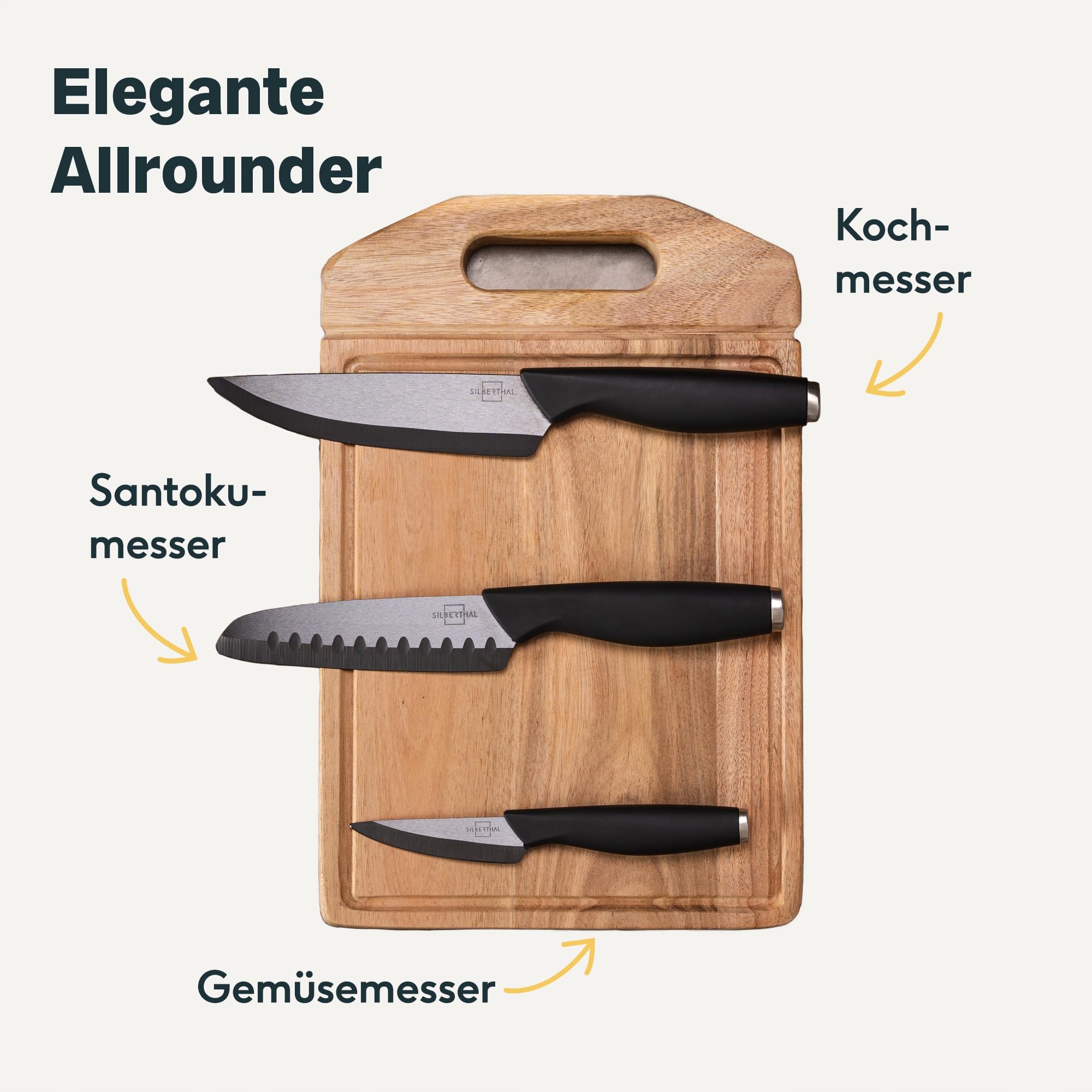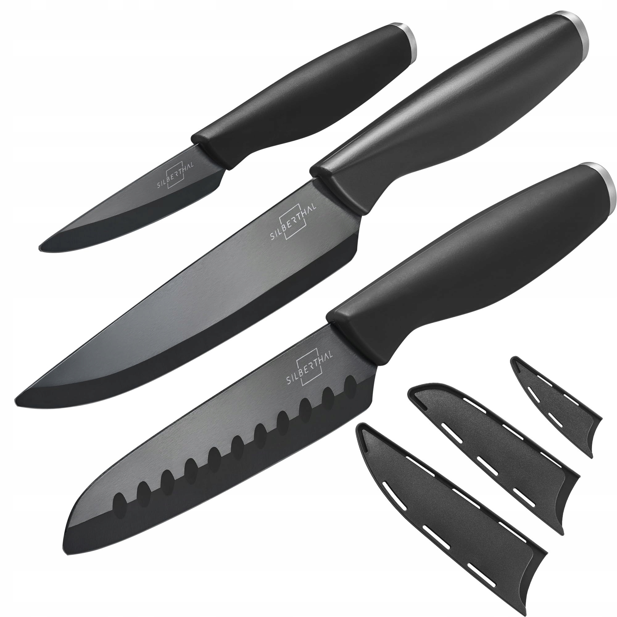 ZESTAW NOŻY CERAMICZNYCH SILBERTHAL 3 szt - Ostry nóż szefa kuchni 15 cm, nóż santoku 13 cm, nóż do obierania 7,5 cm