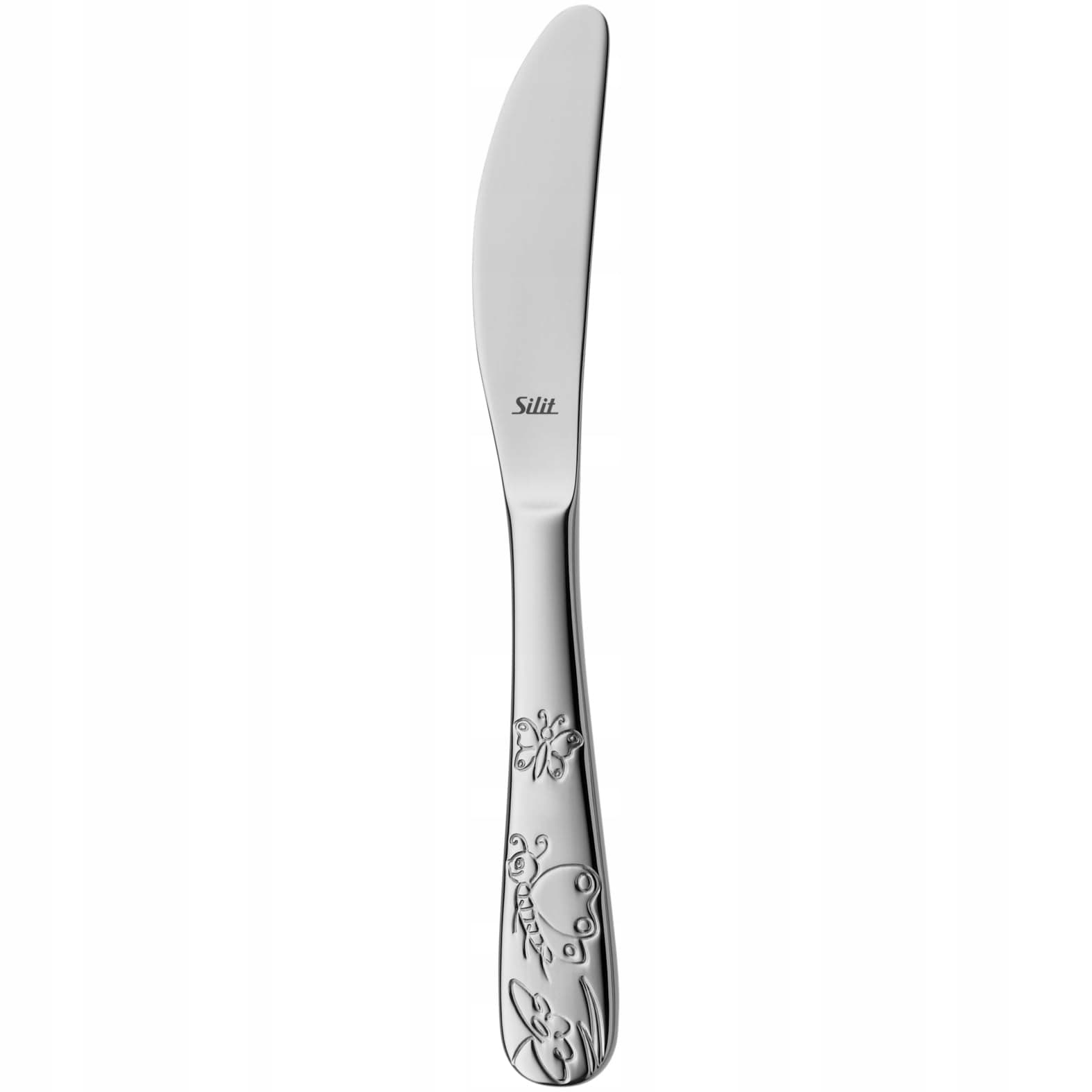 Nóż dziecięcy ma lekko ząbkowane ostrze. Krawędź łyżki jest zaokrąglona, a krótkie tępe ząbki widelca dziecięcego dopasowują się do małych dziecięcych ust