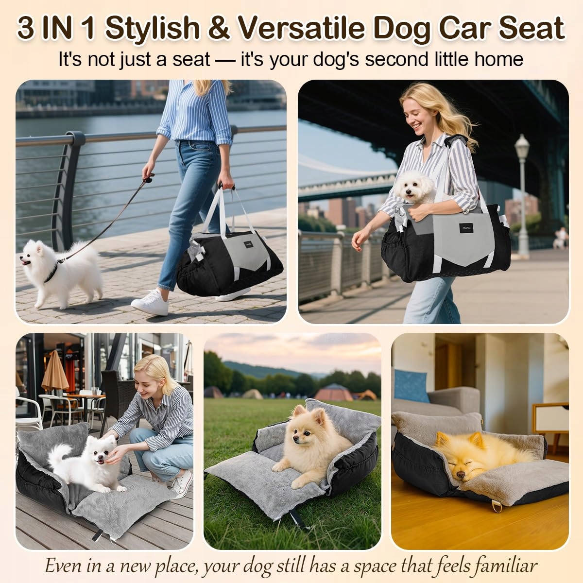 3-w-1 Przenośne łóżko dla psa samochodowe Nie tylko fotelik dla psa, ale również torba podróżna i łóżko w jednym. Dzięki znajomemu zapachowi, dla Twojego zwierzęcia czuje się jak mobilny dom – czy to w samochodzie, w domu czy na kempingu. Wielofunkcyjny fotelik samochodowy dla psa, który zapewnia bezpieczeństwo i poczucie bezpieczeństwa