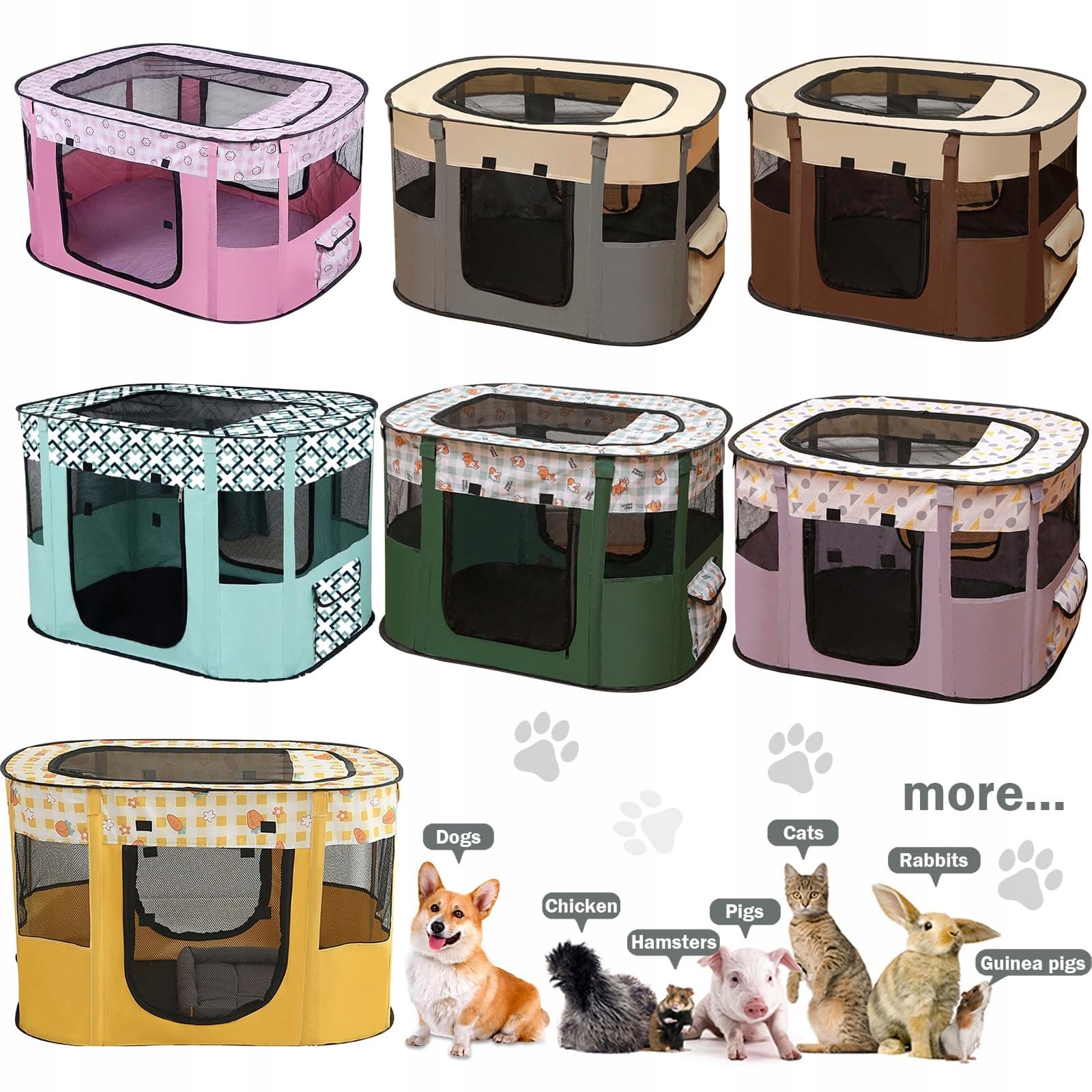 [Praktyczność] Namiot dla zwierząt nadaje się na place zabaw dla psów, kotów, królików, fretek, świnek morskich i innych zwierząt. Po bokach ogrodzenia dla zwierząt znajdują się 2 drzwi rolowane, które ułatwiają wchodzenie i wychodzenie zwierząt, a na górze znajduje się siatkowa drzwi z zamkiem błyskawicznym, umożliwiająca łatwy kontakt ze zwierzętami.
