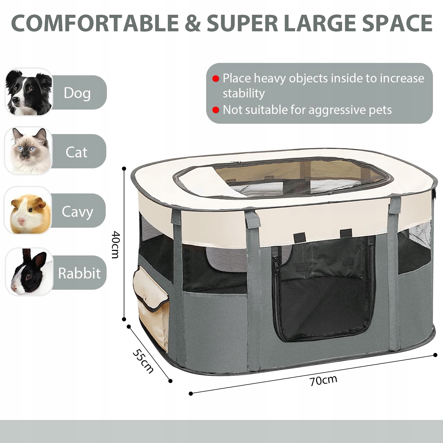 [Prostokątny płotek dla psów] Nasz płotek dla zwierząt jest dostępny w 4 kolorach: różowy/brązowy/szary/fioletowy, a rozmiar każdego namiotu wynosi 70 x 55 x 40 cm. Płotki dla zwierząt zapewniają Twoim futrzanym przyjaciołom dużo miejsca do zabawy.