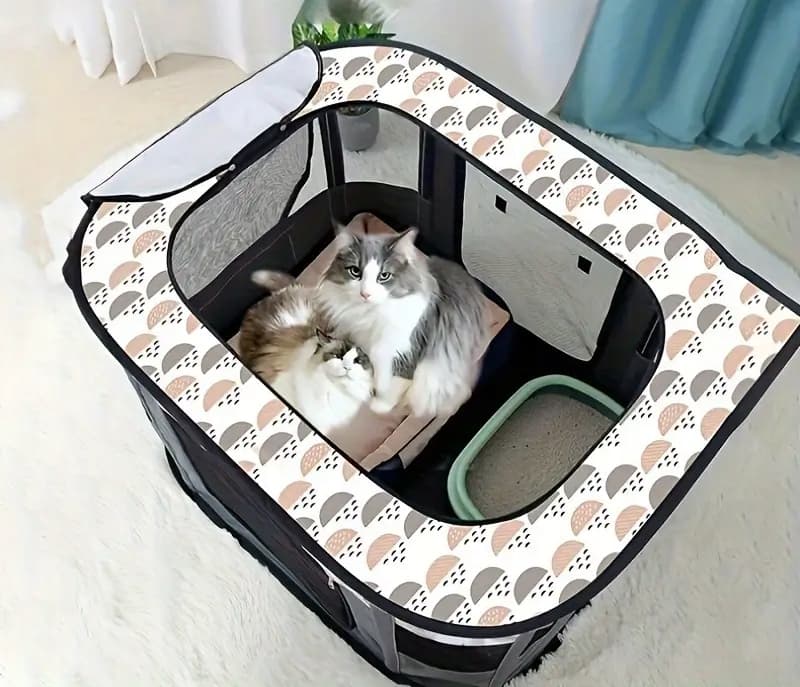 [Praktyczność] Namiot dla zwierząt nadaje się na place zabaw dla psów, kotów, królików, fretek, świnek morskich i innych małych zwierząt. Po bokach płotka dla zwierząt znajdują się 2 drzwi rolowane, które ułatwiają wchodzenie i wychodzenie zwierząt, a na górze znajduje się siatkowa drzwi z zamkiem błyskawicznym, umożliwiająca łatwy kontakt ze zwierzętami.