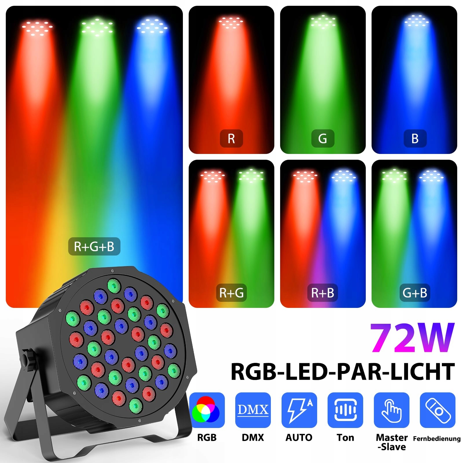 SKSBTF 4SZT RGB LED Par Reflektory, 72W Oświetlenie sceniczne z pilotem i DMX512, światło dyskotekowe na imprezę 9 trybów na imprezę, dyskotekę, scenę, wesele, Boże Narodzenie, wydarzenie