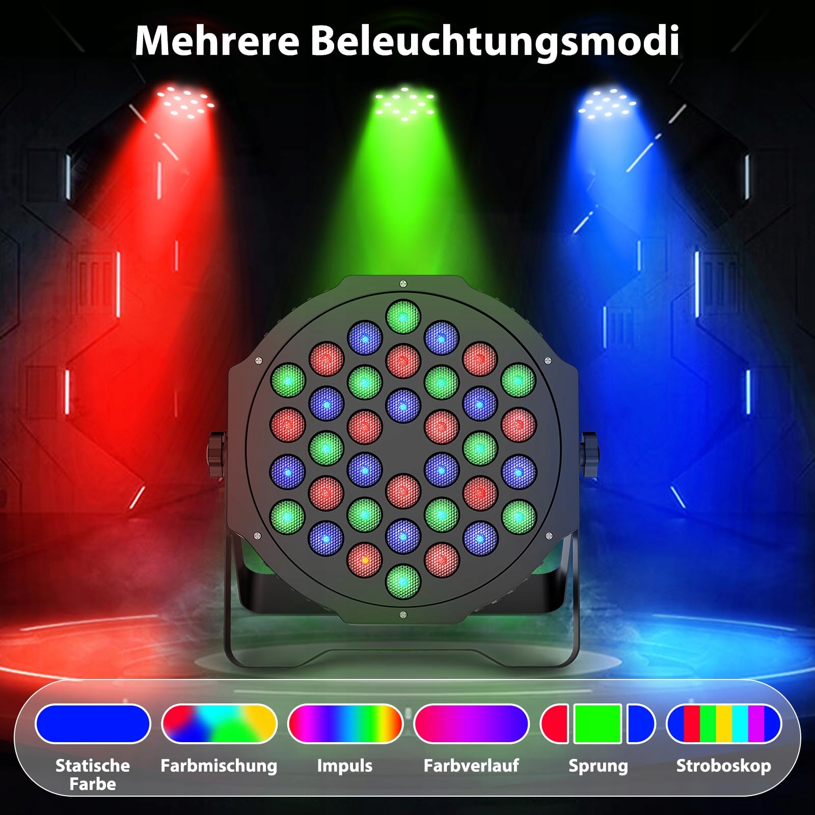 RGB oświetlenie sceniczne: Oświetlenie sceniczne wykorzystuje 36 wysokiej jakości diod LED jako źródło światła o niskim zużyciu energii i stabilnej wydajności świetlnej, w tym 12 x czerwonych, 12 x zielonych, 12 x niebieskich, które mogą mieszać różne efekty kolorystyczne