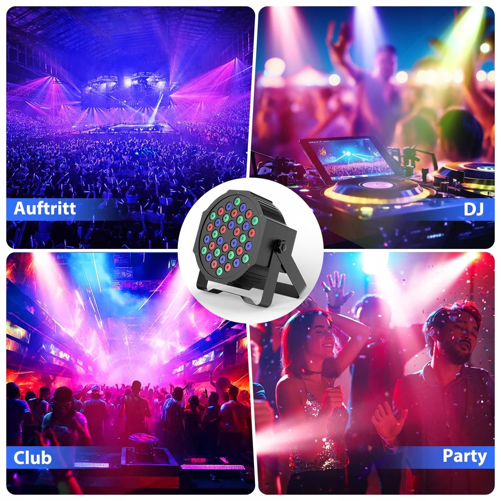 Wysokiej jakości oświetlenie imprezowe: światło imprezowe wykonane z trwałego, wysokiej jakości aluminium, a podwójny uchwyt zapewnia stabilność światła scenicznego. Możesz zawiesić led party spoty wszędzie lub na podłodze, jak chcesz, a następnie dowolnie regulować ich kąt.