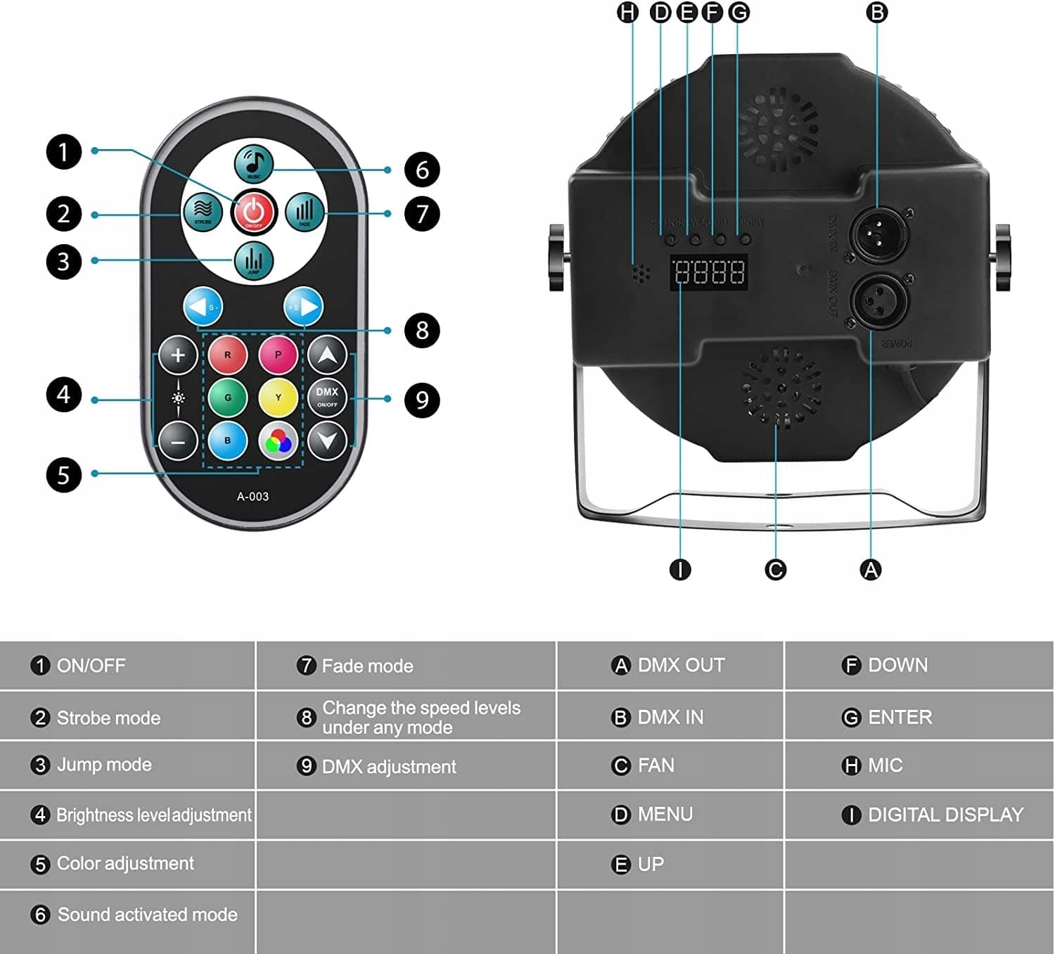 9 trybów oświetlenia: światło dyskotekowe na imprezę obejmuje 9 trybów funkcji, aby sprostać Twoim wymaganiom. Statyczny kolor, mieszanie kolorów, tryb zanikania i pojawiania się, tryb pomijania, tryb stroboskopowy, aktywacja dźwiękiem, automatyczne odtwarzanie, master-slave, DMX
