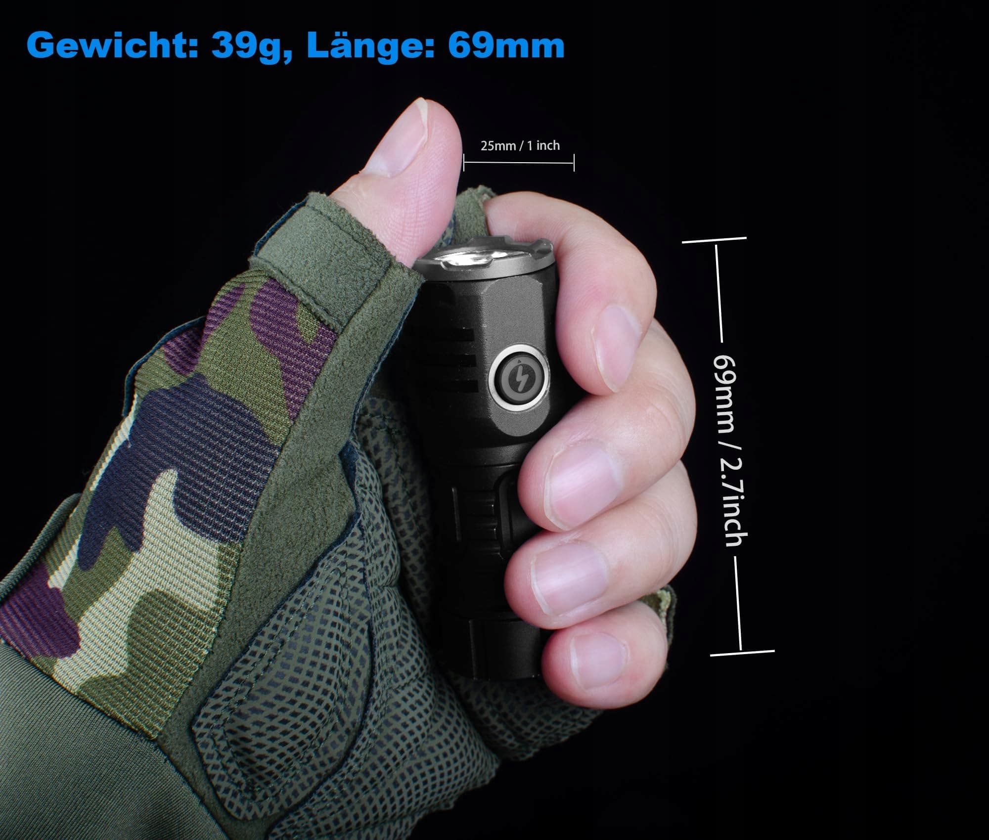 [Uwaga] Proszę wybrać tryb (niska lub średnia jasność) do codziennego oświetlenia, aby uzyskać dłuższy czas świecenia. Proszę nie używać trybu Ultra Jasnego przez dłuższy czas. Mini latarka jest bardzo mała, a prace przy dużym obciążeniu powodują nagrzewanie się. Nie kieruj latarki w oczy.