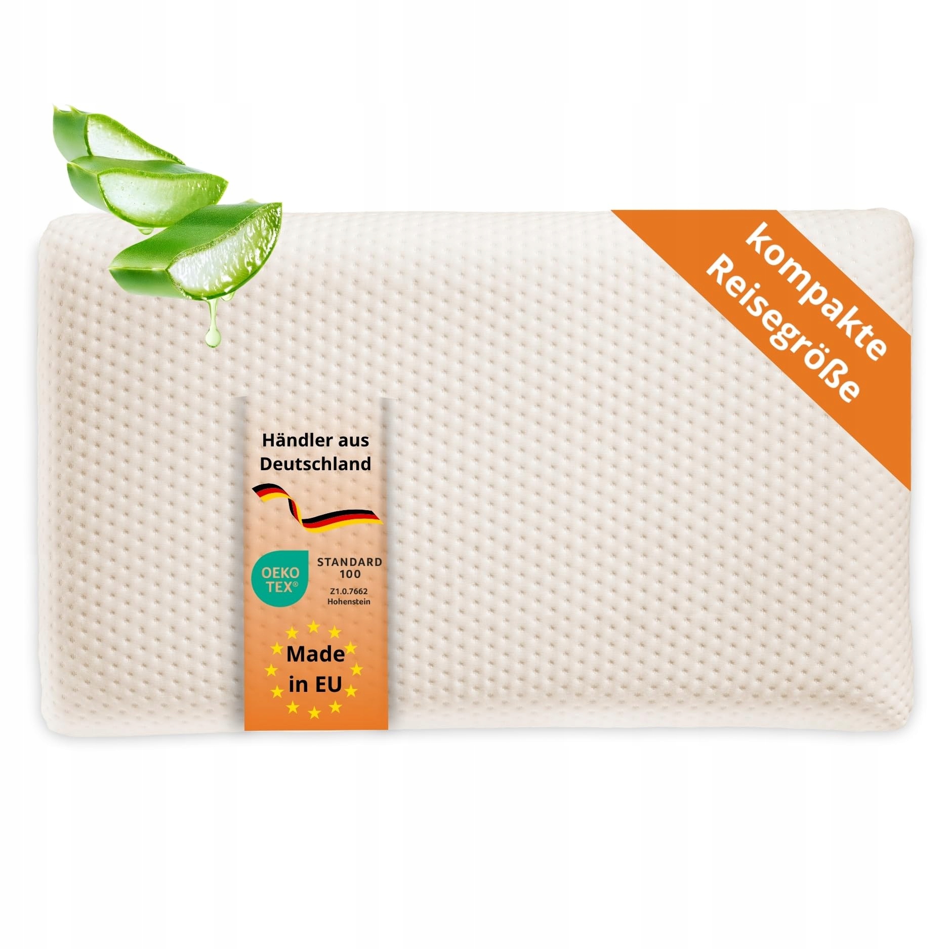 sleepling mała poduszka podróżna 25x42cm, wysokość 10cm, poduszka na szyję, ortopedyczna poduszka, kompresowalna pianka memory foam Visco poduszka na głowę 25 x 42 cm, ergonomiczna podpórka na szyję, Made in EU, Oeko-TEX