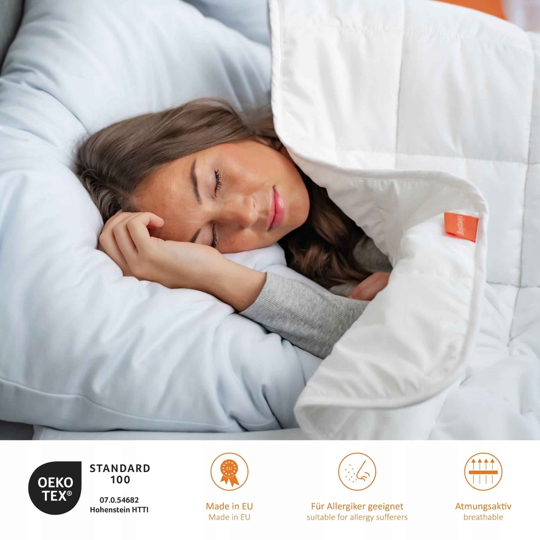 Obietnica jakości: Made in EU, certyfikat Öko-Tex 100. Wysokiej jakości zamek błyskawiczny do elastycznego dodawania lub usuwania wypełnienia – dostosuj ilość wypełnienia według własnych potrzeb, czy to wysoka czy niska, miękka czy twarda, całkowicie zgodnie z Twoim komfortem snu