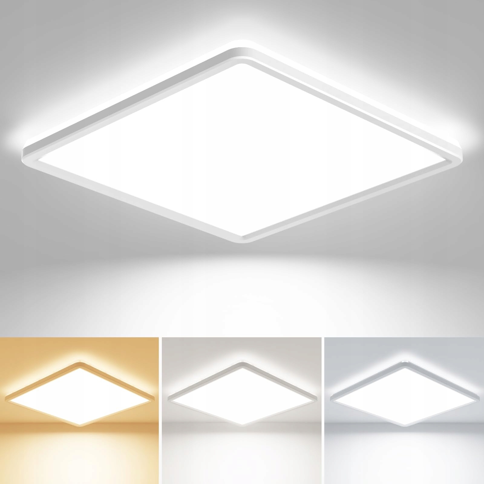 slochi 3Kolory 3000/4000/6500K LED Lampa sufitowa, Kwadratowa lampa sufitowa Płaska Ø29cm 24W 2400LM, Ultra cienka lampa sufitowa do sypialni, salonu, łazienki, balkonu, korytarza, kuchni, wejścia