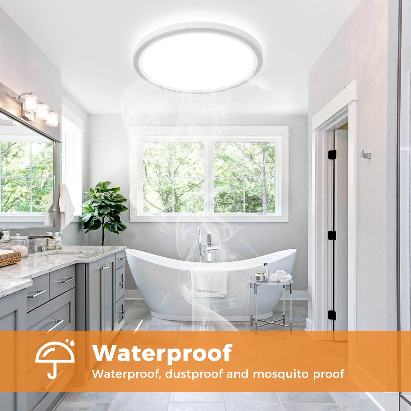 Oszczędność energii i długowieczność: 24W lampa do łazienki zastępuje 150 W żarówkę, oszczędzając 85% energii, co pozwala zaoszczędzić dużo na kosztach energii. Płaska lampa sufitowa ma ochronę przed przeciążeniem/krótkim spięciem, wysokiej jakości ognioodporny materiał PC i długą żywotność do 25.000+ godzin, co pozwala uniknąć większości potencjalnych zagrożeń