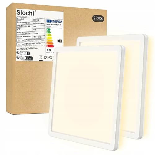 slochi [2 sztuki] LED lampa sufitowa, 18W ultra cienka nowoczesna lampa sufitowa płaska 2.1cm, 3000K ciepła biel, LED lampa sufitowa kwadratowa do sypialni, salonu, łazienki, balkonu, korytarza, kuchni, garderoby