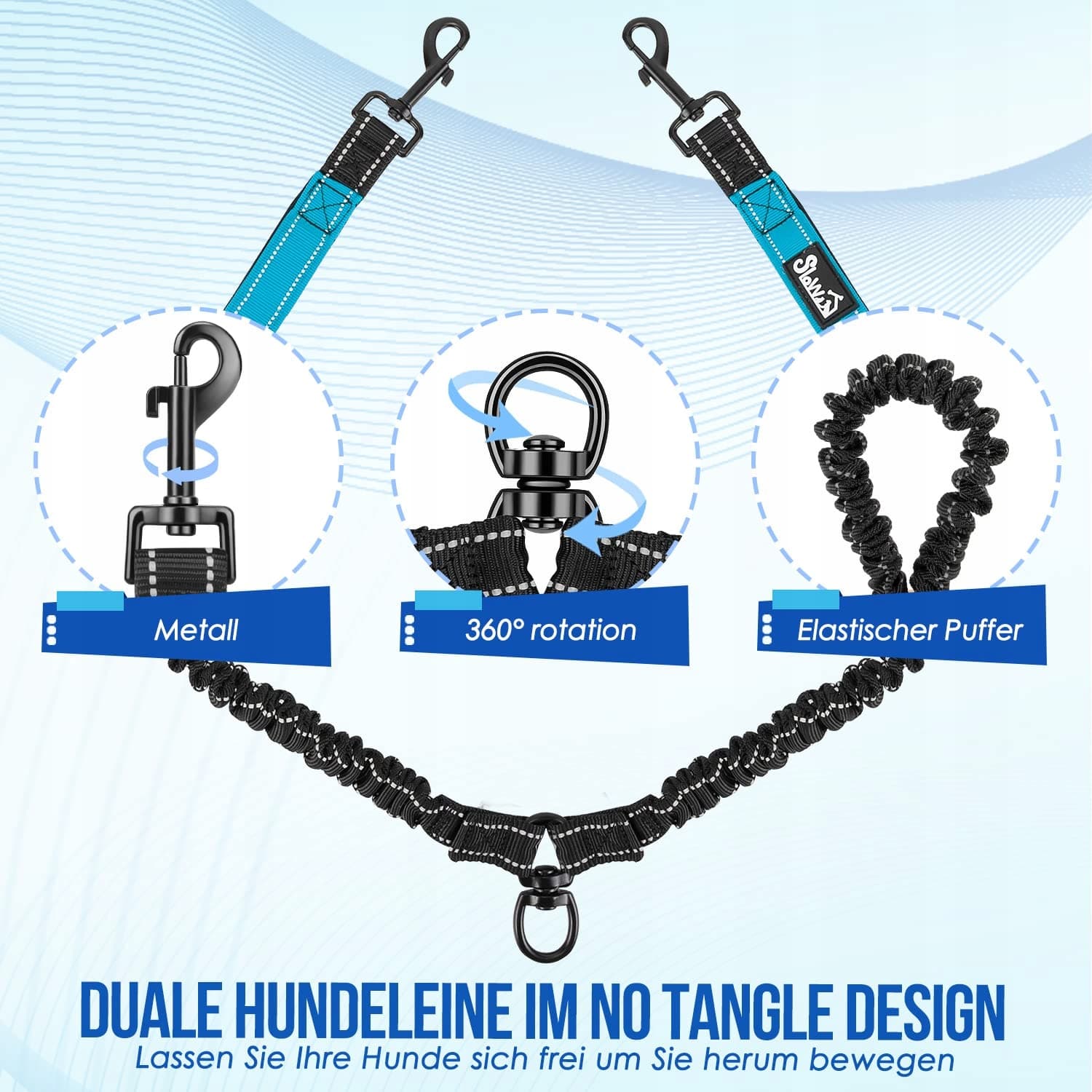 SlowTon podwójna smycz dla 2 psów, obrotowa o 360°, odblaskowa smycz z TRZEMA wyściełanymi uchwytami, wygodna amortyzująca smycz treningowa dla dużych psów (11-68 KG)