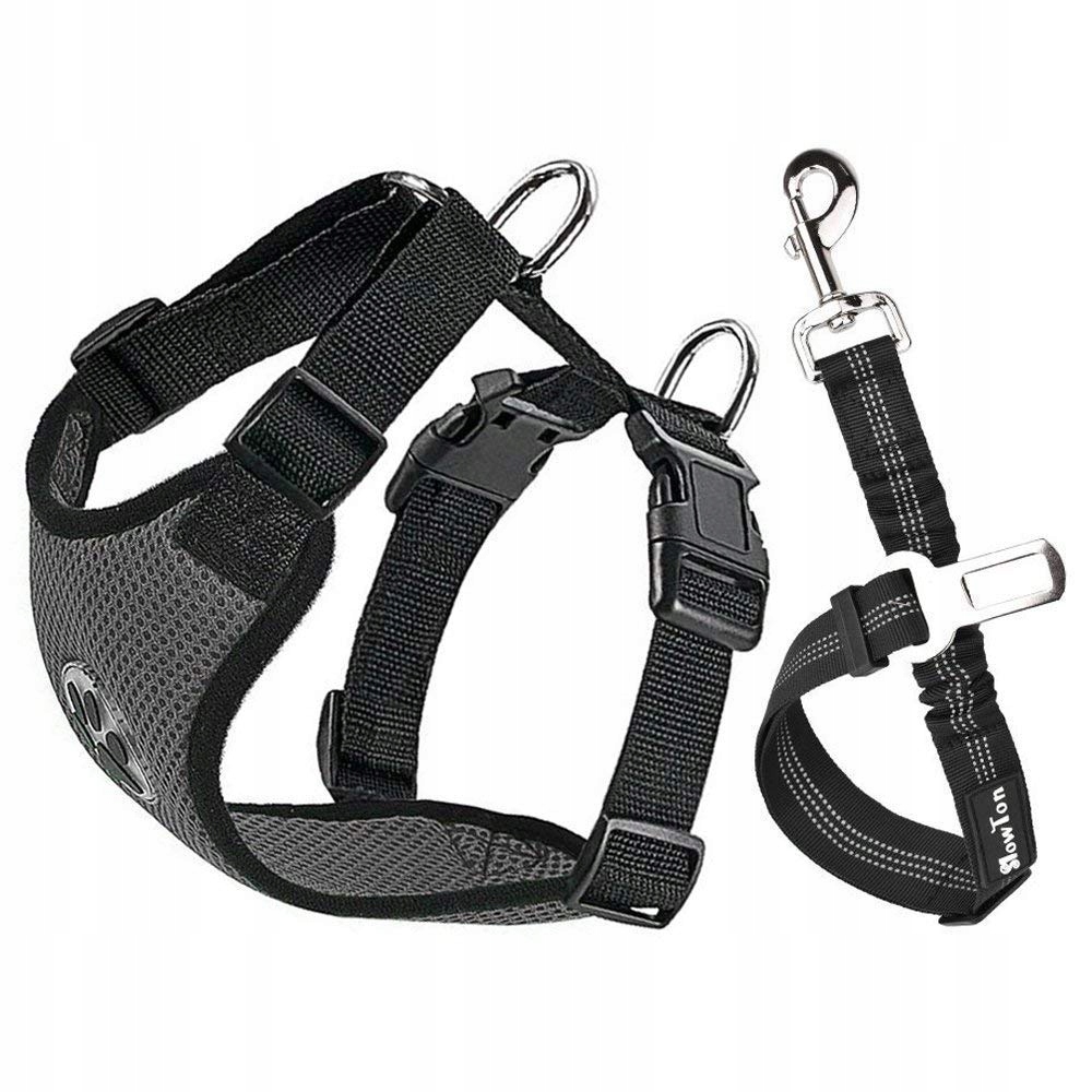 SLOWTON Szelki Dla Psa Z Pasy Bezpieczeństwa Do Samochodu Szare S