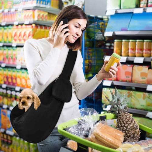 SlowTon torba na psa, torba na zwierzęta z regulowanym, wyściełanym paskiem na ramię i przednią kieszenią, torba na psa do spacerów, aktywności na świeżym powietrzu i wycieczek (siatka-czarna)