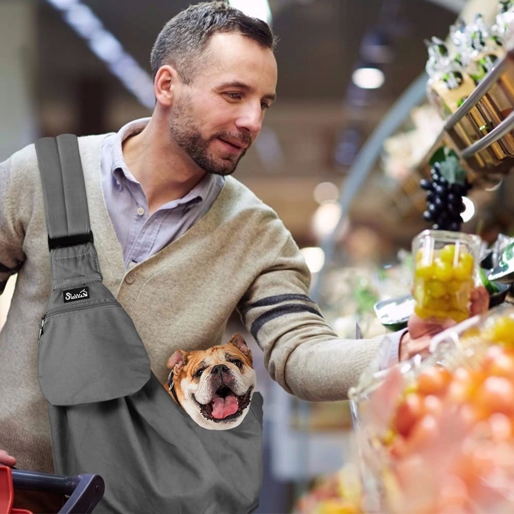 SlowTon torba na psa, torba na zwierzęta z regulowanym, wyściełanym paskiem na ramię i przednią kieszenią, torba na psa na spacery, aktywności na świeżym powietrzu i wycieczki (szara)