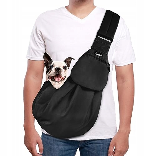 SlowTon torba na psa, torba na zwierzęta z regulowanym, wyściełanym paskiem na ramię i przednią kieszenią, torba na psa na spacery, aktywności na świeżym powietrzu i wycieczki (czarna)