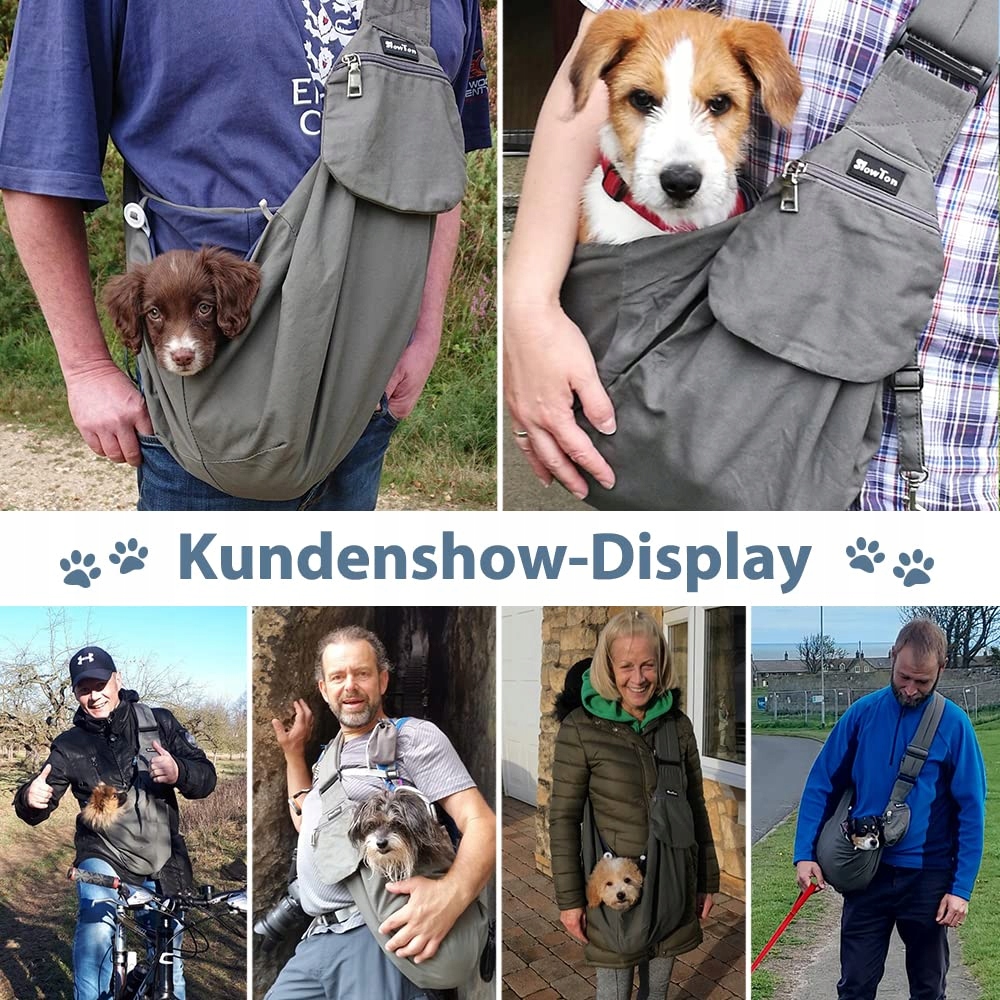 SlowTon torba na psa, torba na zwierzęta z regulowanym, wyściełanym paskiem na ramię i przednią kieszenią, torba na psa na spacery, aktywności na świeżym powietrzu i wycieczki (Szary)