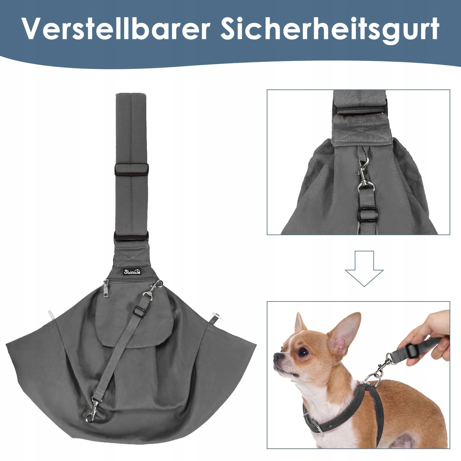 SLOWTON Torba Na Psa Regulowany Pasek Na Ramię Szara | Premium Supply