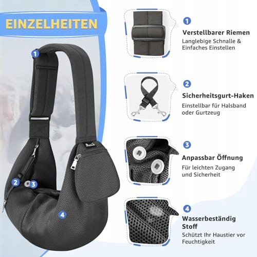 SlowTon torba na psa, torba na zwierzęta z regulowanym, wyściełanym paskiem na ramię i przednią kieszenią, torba na psa do spacerów, aktywności na świeżym powietrzu i wycieczek (siatka-szara)