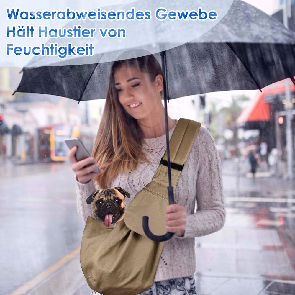 SlowTon torba na psa, torba na zwierzęta z regulowanym, wyściełanym paskiem na ramię i przednią kieszenią, torba na psa do spacerów, aktywności na świeżym powietrzu i wycieczek (brązowa-wodoodporna)