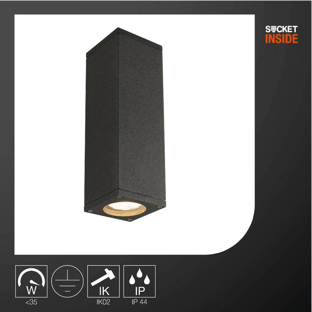 SLV THEO UP/DOWN | Oświetlenie ogrodu, tarasu, elewacji, ściany domu, wejścia, lampa zewnętrzna, reflektor zewnętrzny, reflektor LED | IP44, antracyt, kwadratowy, 2xGU10