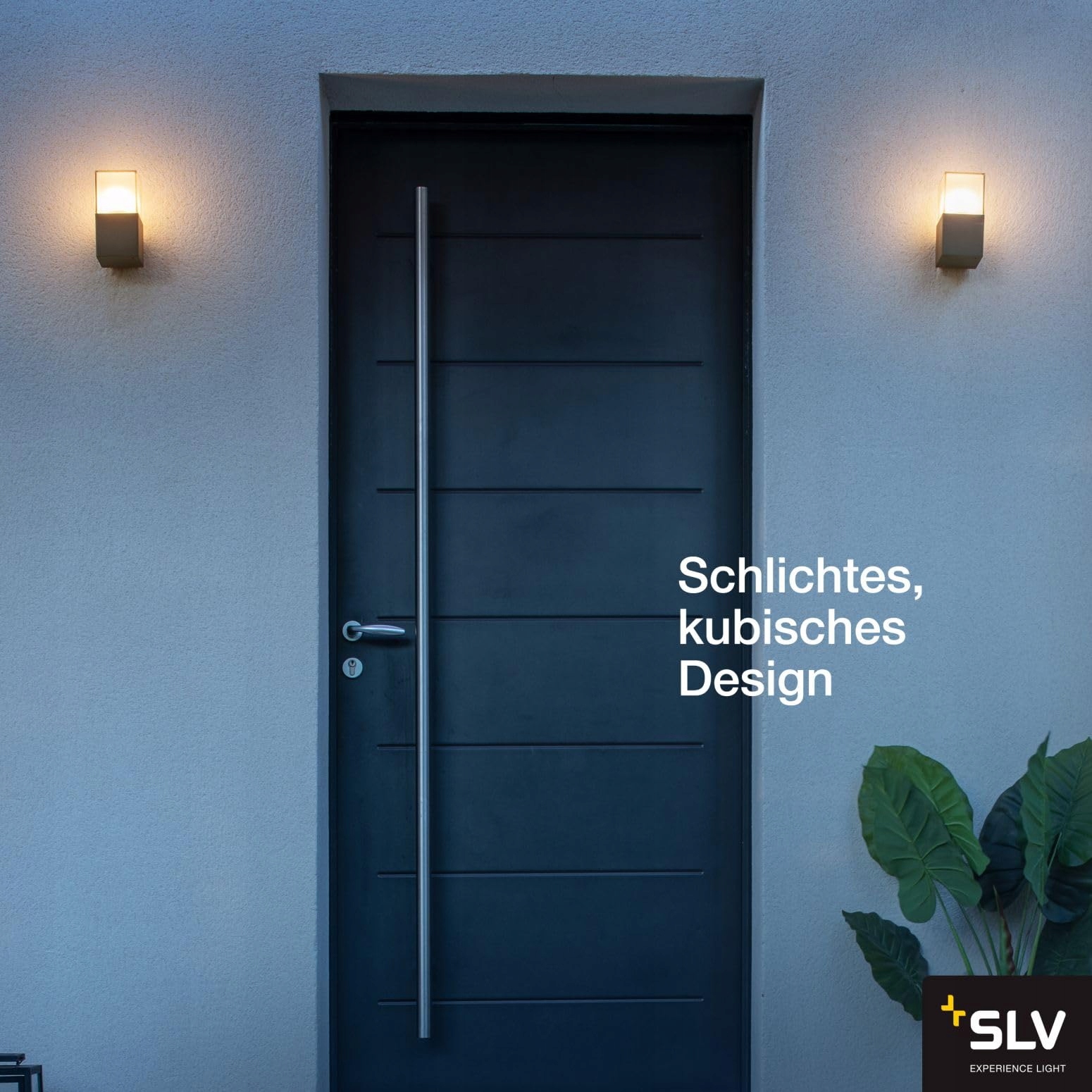 SLV Zewnętrzna lampa ścienna GRAFIT | Lampa ścienna na zewnątrz, lampa na taras, lampa ogrodowa | wysokiej jakości aluminiowo-plastikowa lampa zewnętrzna, 12 x 8,5 x 17 cm