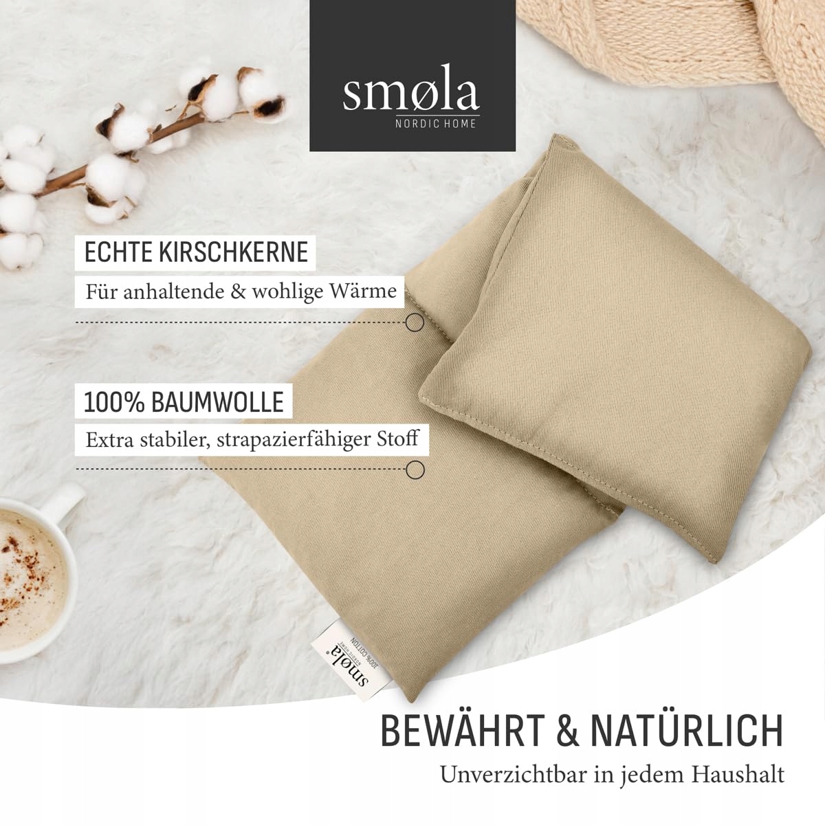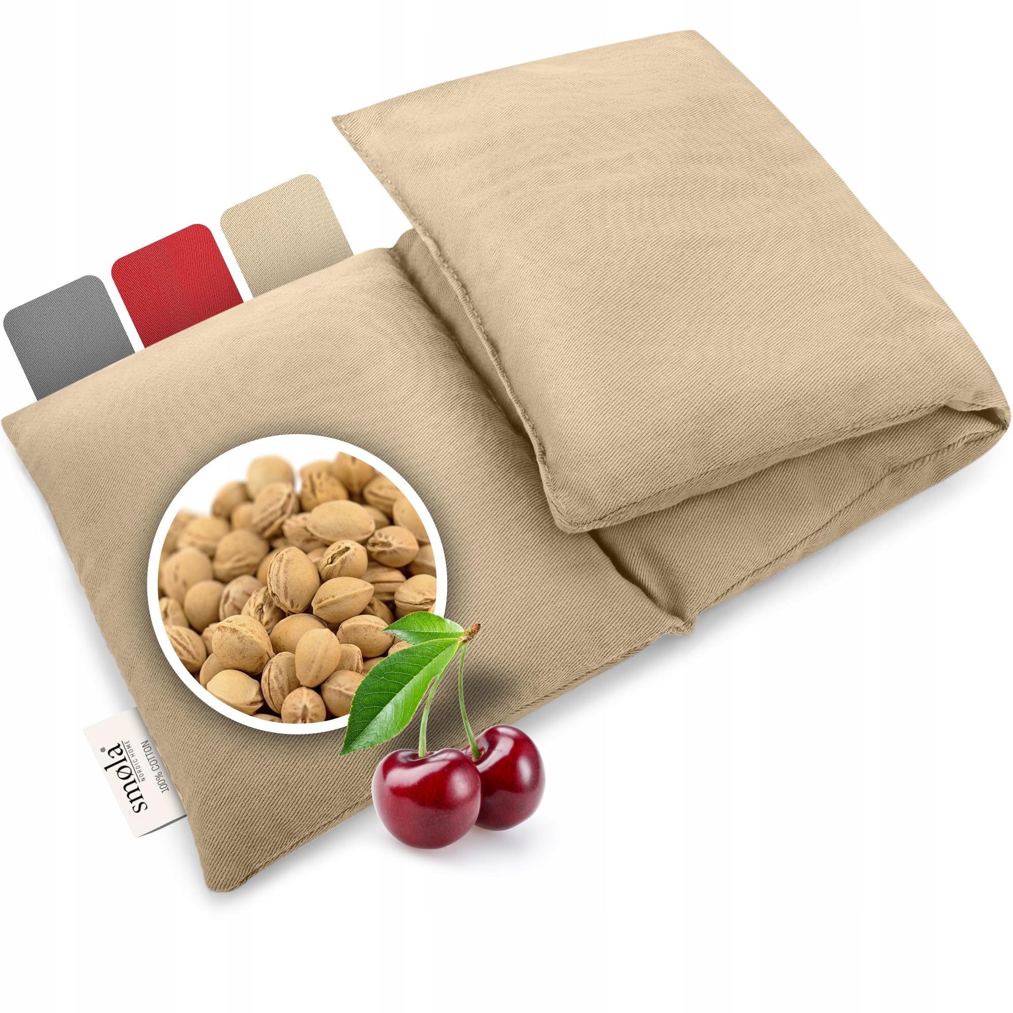 smøla Poduszka z pestkami wiśni duża do mikrofalówki I 3-komorowa 47x19cm Poduszka z ziarnami na plecy, kark, ramiona I 850g pestek wiśni I ogrzewacz nerek, poduszka termiczna I naturalna termofor, piaskowy beż