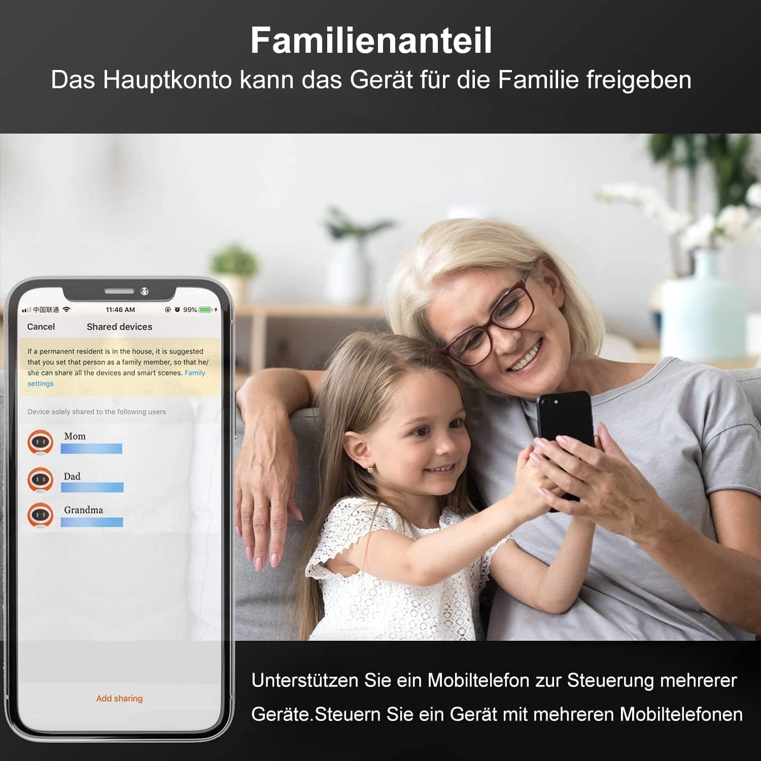 ⭐Wspólne sterowanie: ta inteligentna listwa zasilająca może zrealizować wspólne sterowanie w aplikacji, wystarczy utworzyć grupę, aby dzielić się nią z rodziną lub ukochaną osobą, aby wspólnie nią sterować, bardzo proste.