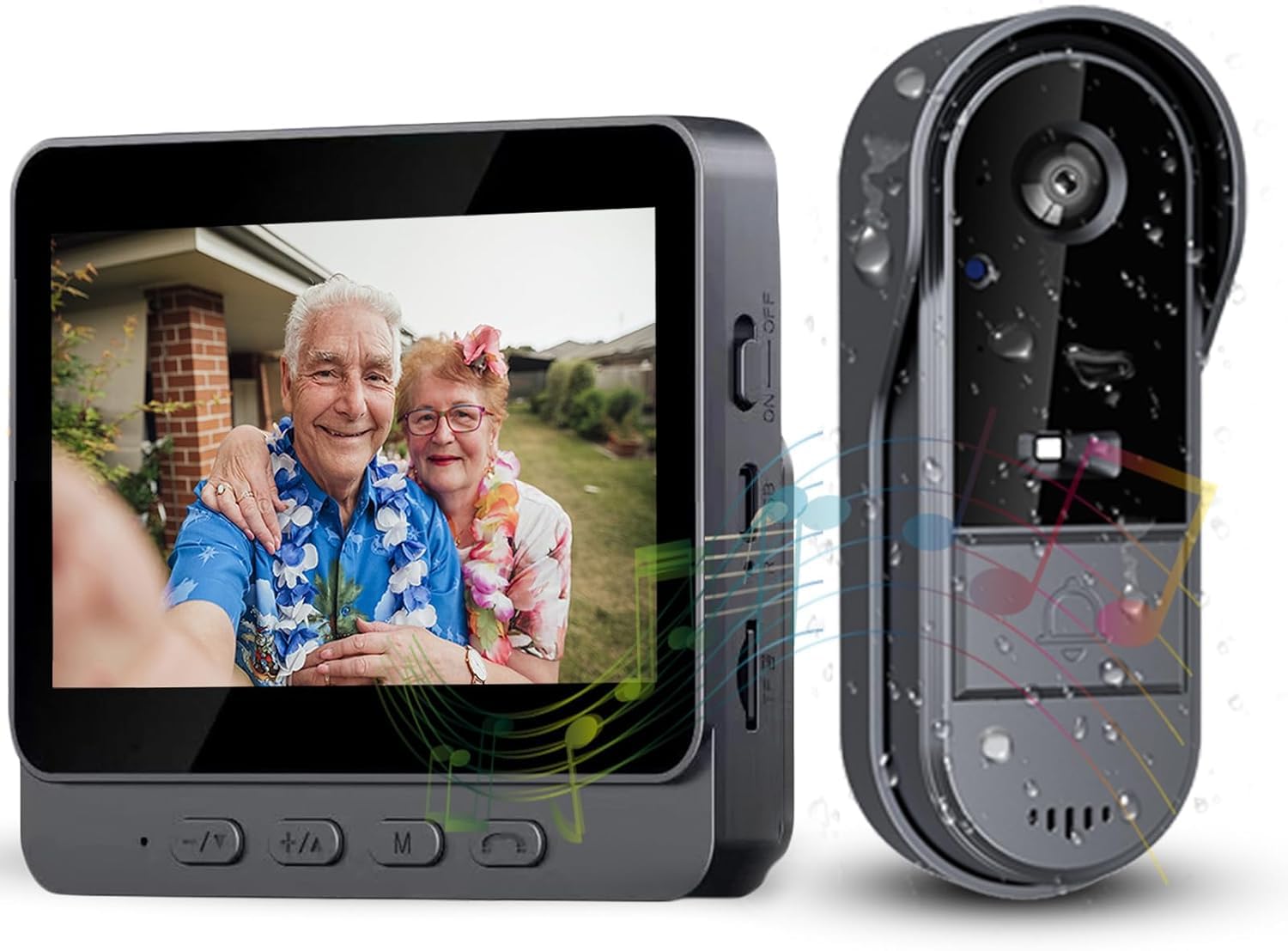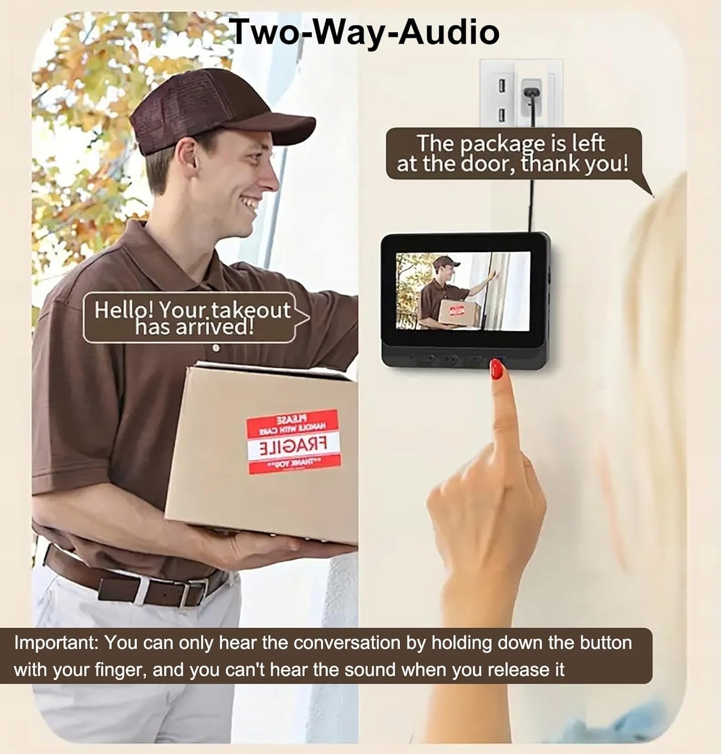 Bezprzewodowy wideodomofon z dzwonkiem o przekątnej 4,3" HD, wodoodporny, bezprzewodowy dzwonek do drzwi 1080P z interkomem, bez potrzeby WiFi, dwukierunkowe audio, tryb nocny, kąt widzenia: 170°