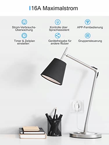 Gniazdko Smart Wlan z pomiarem energii, zestaw 2 gniazdek Alexa, gniazdko Smart Home WiFi, akcesoria Alexa, harmonogram, zdalny dostęp, działa z Alexą, Google Home, SmartThings, tylko 2,4-G-WLAN, 16A
