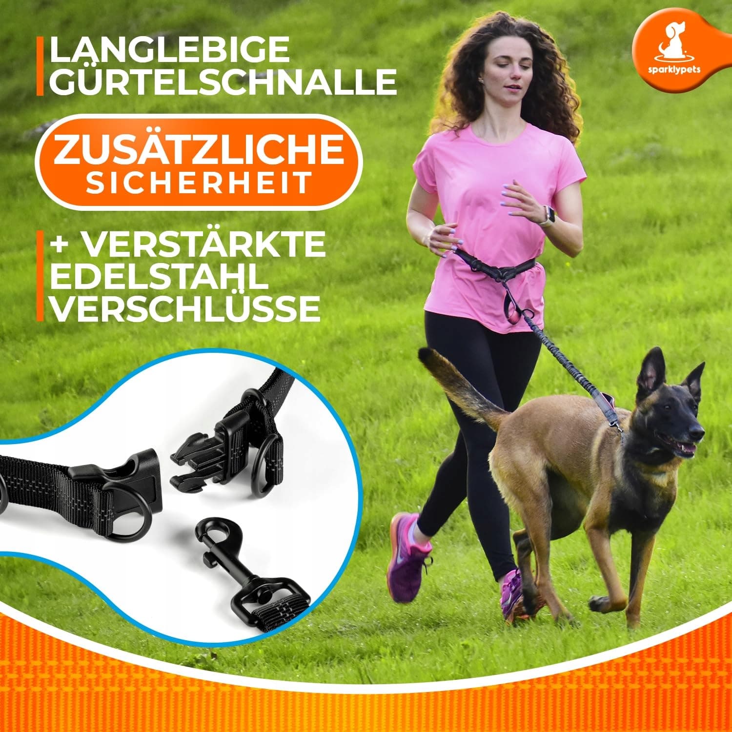 ★ Bezpieczne klamry na pasie – W przeciwieństwie do innych smyczy bez użycia rąk, które mogą uwolnić Twojego psa przez odpięcie pasa, nasza profesjonalna smycz posiada mechanizm wsparcia zaprojektowany z 2 stalowymi zapięciami, które zdejmują całe napięcie z plastikowej klamry i rozkładają siłę ciągnięcia na obie strony pasa!