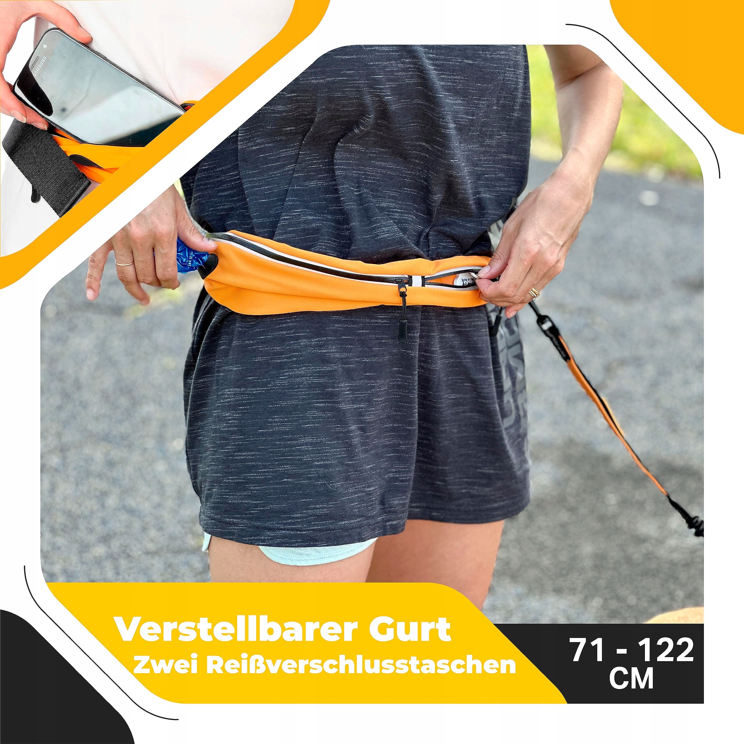 SMYCZ DO BIEGANIA Z INTEGRALNĄ KIESZENIĄ NA ZAMEK z 2 przegrodami. Trzyma telefon i klucze oddzielnie, aby zapobiec zarysowaniu ekranu telefonu. Również praktyczna, aby mieć miejsce na woreczki na odchody, gdy pies potrzebuje przerwy na toaletę