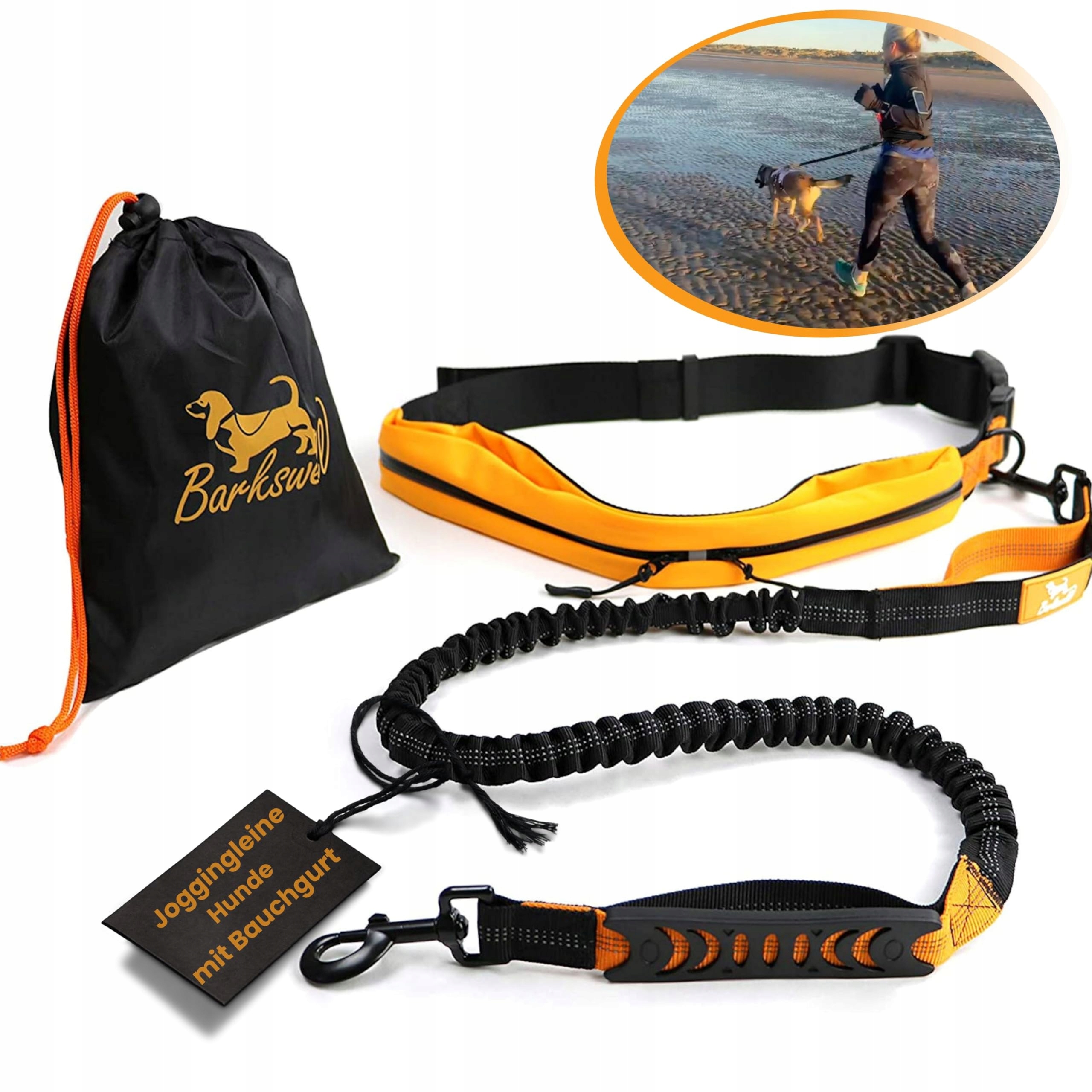 Smycz do biegania dla psów z pasem biodrowym dla dużych/średnich psów do 60 kg - Pas do biegania z elastyczną smyczą dla psa – Pas do canicrossu/smycz do canicrossu - Smycz do biegania dla psów