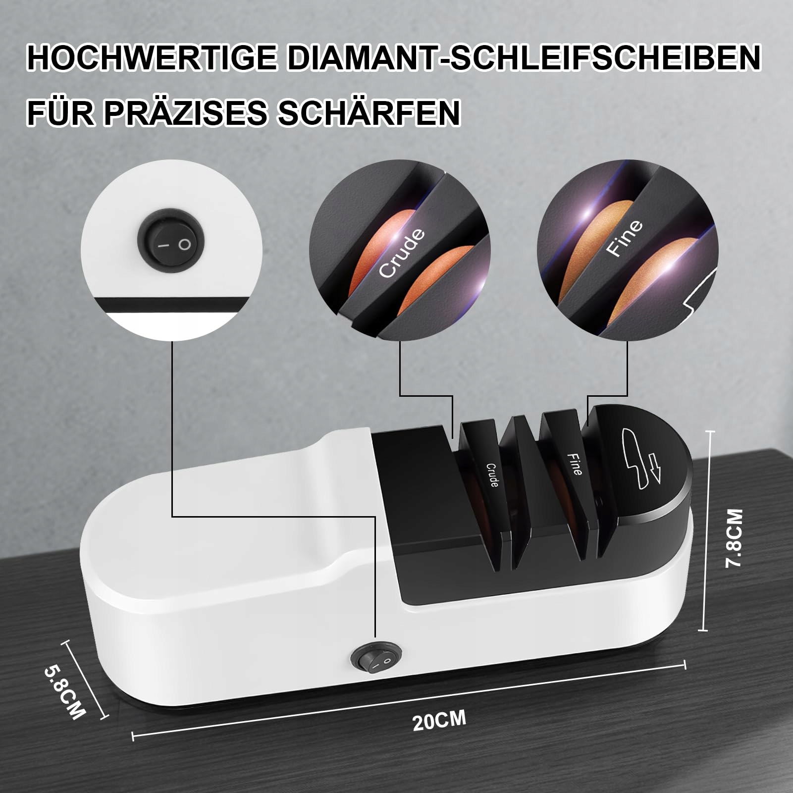【Delikatny design dla Twoich ostrzy】Wyposażona w najnowocześniejszą technologię, nasza elektryczna ostrzałka do noży chroni ostrze przed przegrzaniem i nadmiernym zużyciem. Zapewnia to wydłużoną żywotność Twoich cennych noży. Solidna konstrukcja i wysokiej jakości materiały sprawiają, że Twoje ostrza długo zachowują ostrość i nie ulegają zużyciu. Ta przyjazna dla designu elektryczna ostrzałka do noży jest idealna dla wszystkich, którzy chcą utrzymać swoje noże kuchenne w doskonałym stanie, nie rezygnując z jakości.