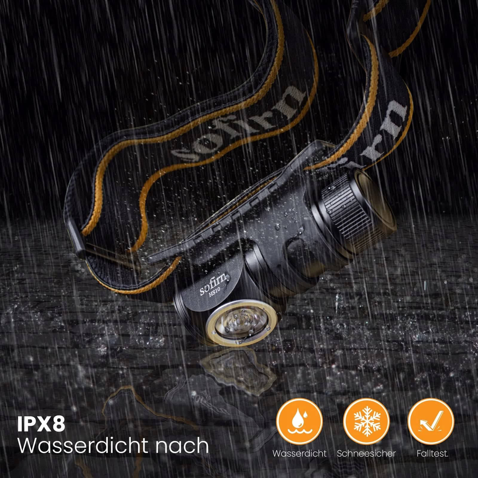 Super jasna & 5 poziomów jasności: Sofirn HS10 to wielofunkcyjna przenośna latarka, która osiąga maksymalną moc 1100 Lumenów. 8 trybów świetlnych z Strobe/SOS/Beacon (1100lm/500lm/1100lm), maksymalny czas pracy 150h. Maksymalny zasięg wiązki wynosi 129m.