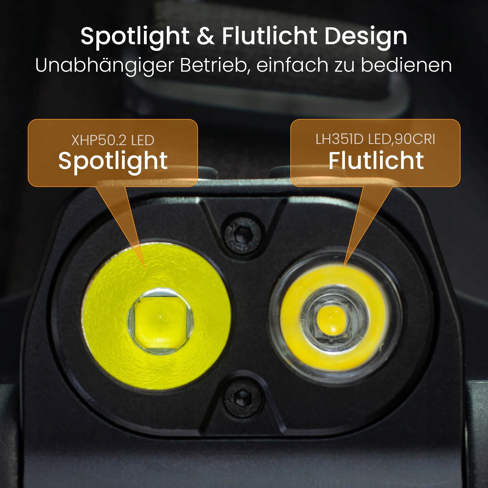 Podwójny projekt LED i przełącznika: ta HS20 ma 2 diody LED, to LH351D i XHP 50.2. Podwójny przełącznik może wybierać różne tryby jasności i więcej opcji jasności, bardzo wygodne i bardziej użyteczne do sterowania.